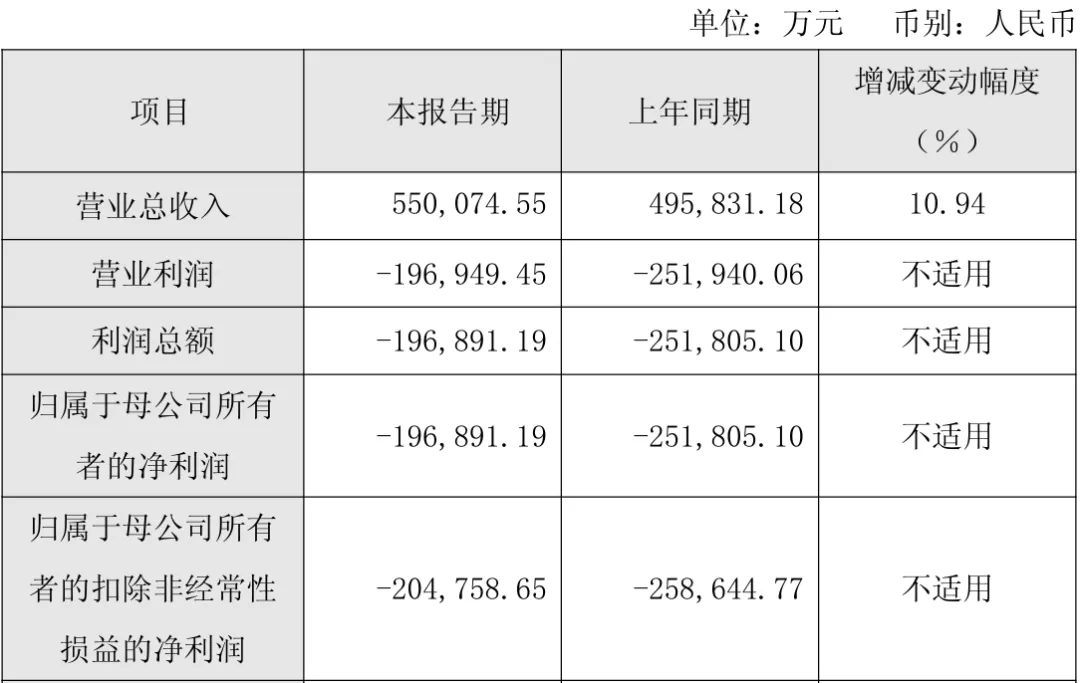报告期内,公司归属于母公司所有者的净利润及归属于母公司所有者的扣除非经常性损益的净利润为负数,较上年同期改善幅度分别为21.81%、20.83%,其中归属于母公司所有者的净利润-19.7亿元,较上年同期亏损减少5.5亿元;归属于母公司所有者的扣除非经常性损益的净利润-20.5亿元,较上年同期亏损减少5.4亿元。