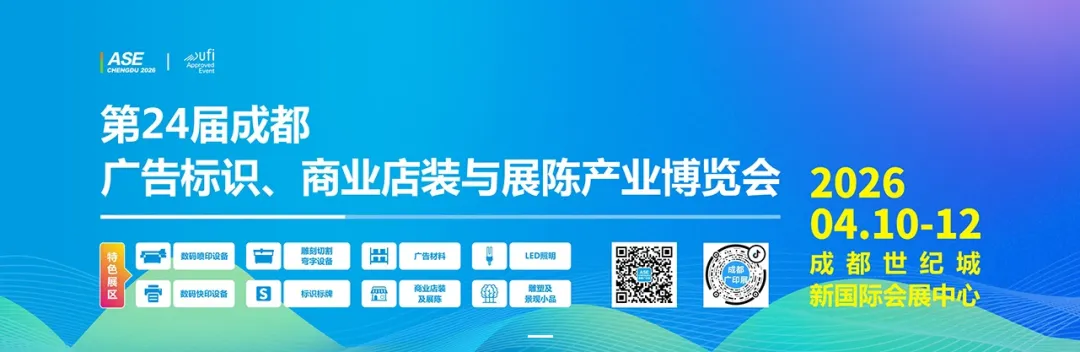 【展会简介】ASE CHENGDU,作为中国中西部广告行业采购盛会,每年春季在成都举行,由广告设备材料商贸交流、高峰论坛、颁奖典礼、作品巡展等板块组成。展会立足中国市场,紧跟国际化潮流趋势,始终关注广告行业的创意技术,牵动着行业的发展。历经二十一年沉淀与发展,ASE CHENGDU2026继续以“文化创意 技术革新”为主题,扩大展会规模与招展范围,以进一步契合不同领域的买家需求。