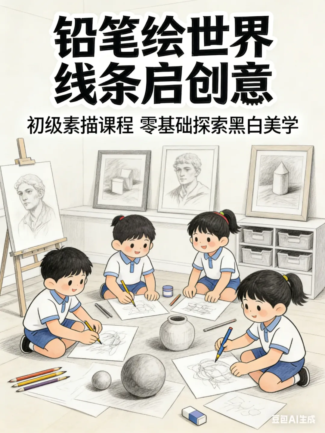 超有趣的初级素描课,妥妥是玩转线条光影的美学启蒙天花板!孩子们变身勾勒美好世界的小小素描家,从握稳第一支铅笔、画好第一条线条开始,让纸上的画面跟着笔触 “活” 起来。一次次排线、塑形中,把光影变成立体的轮廓、细腻的图案,眼里满是欢喜。当这份练出来的观察力、动手力在校园画展、绘画比赛中收获满满认可时,我们更珍惜的,是孩子心里那颗发现美、描绘美的种子,正慢慢长成伴随一生的审美能力!