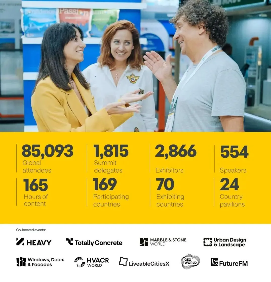 观众资源:吸引8.5 万 + 全球专业参会者,涵盖建筑设计、工程施工、项目开发、供应链采购等全产业链关键人群;