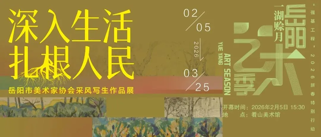 开幕时间:2026年2月5日(周四)下午3:30 展览周期:2026年2月5日—3月25日 线下地址:岳阳市文联看山美术馆(免费观展) 线上观展:随时随地云端赏艺~