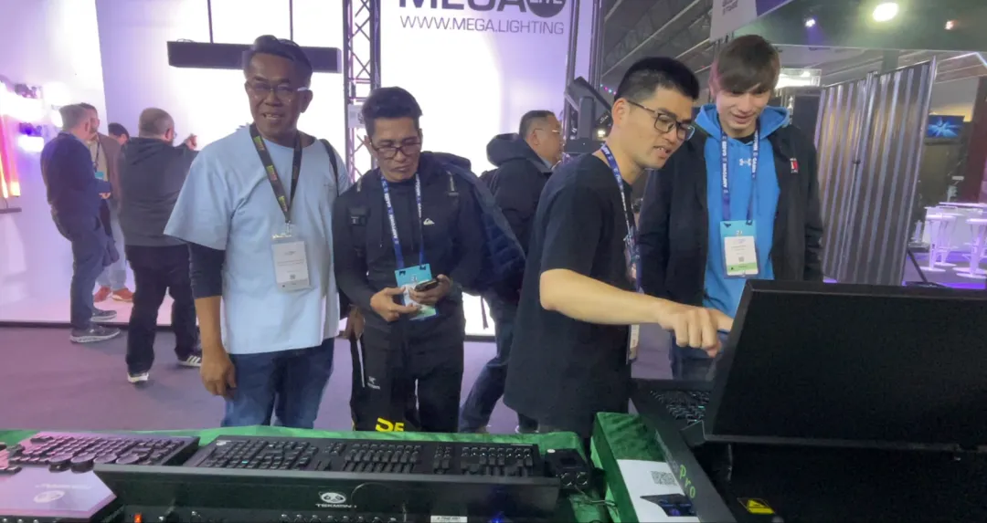 走进8.1展厅TEKMAND 8B800展位,光影交错、人流如织。来自全球的专业观众驻足体验,深入交流。本次展出TEKMAND G3智能灯光控台和TEKMAND D系列控台,吸引众多国际客商现场驻足观看、洽谈合作,共探舞台未来。