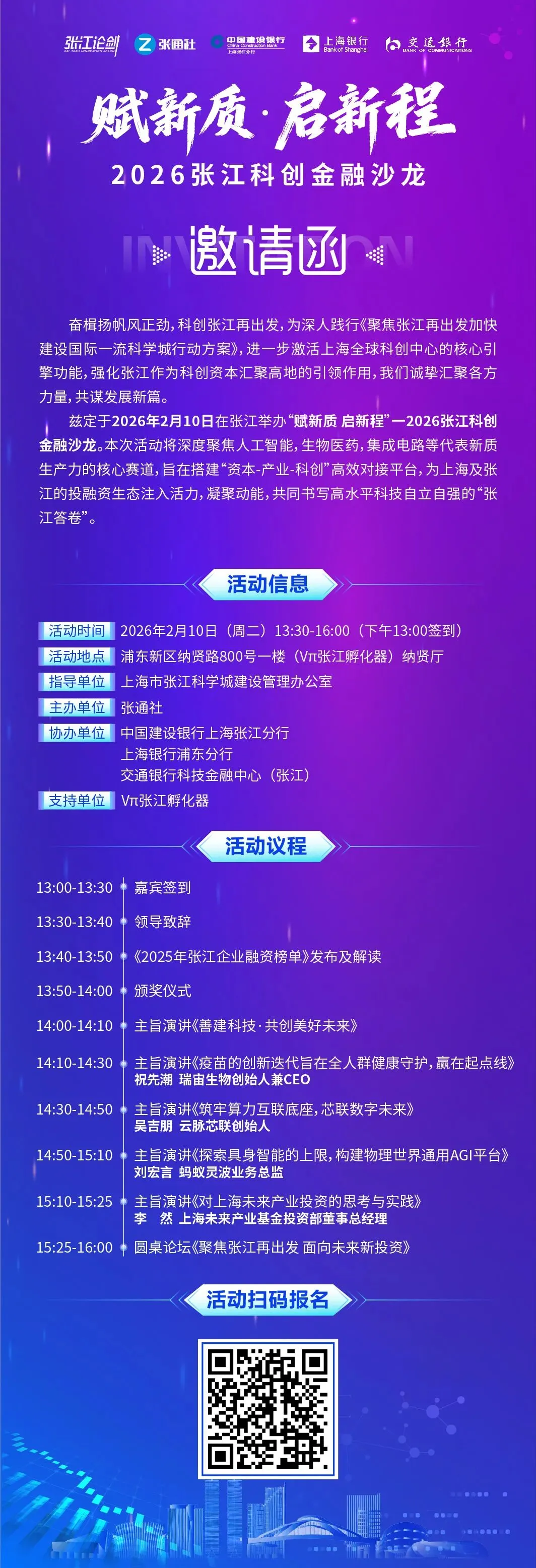 2月10日!一起见证2025年张江科技企业融资榜单发布