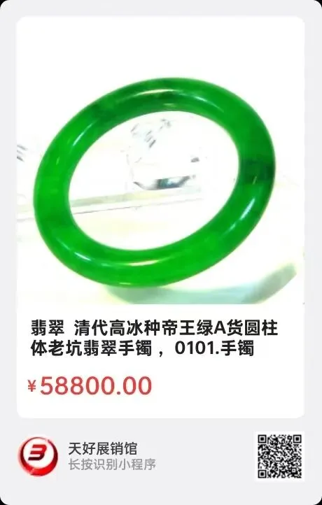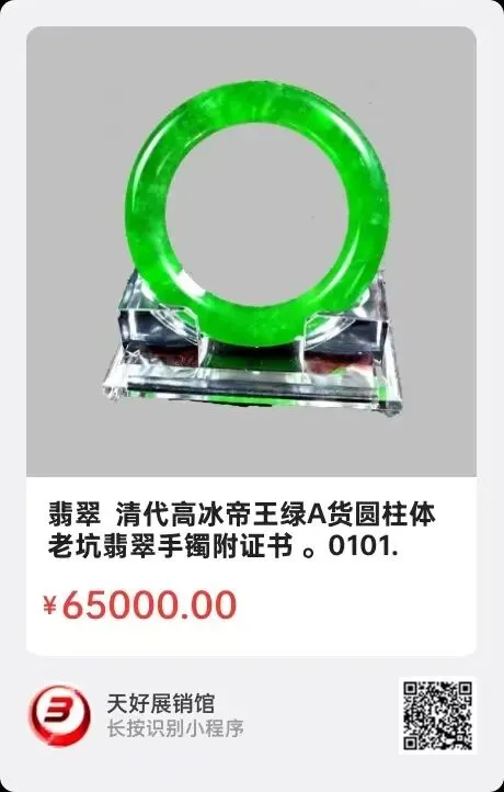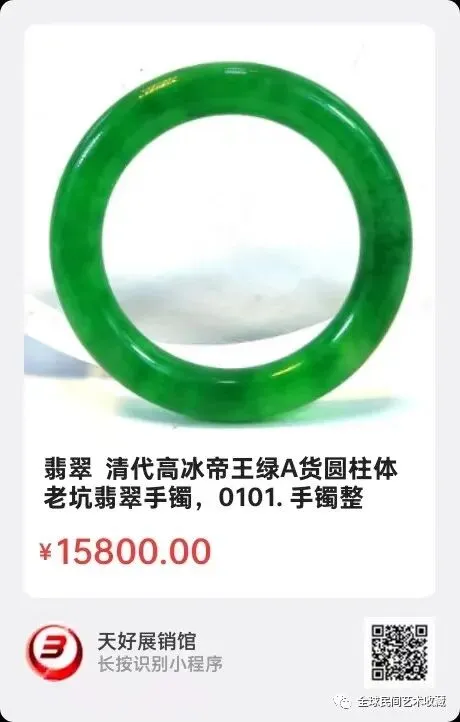 翡翠 清代高冰帝王绿A货圆柱体老坑翡翠手镯附证书 。手镯整体为全绿色翠玉料,翠色深浅统一,迎光透明,灯光下能看得出手镯内棉絮状包裹物分布均匀。整件手镯翡翠料质感滋润,翠色鲜艳翠根连绵不绝,苍蝇翅明显,水头很足,手感有明显不太平整的地方,这是由于清代工匠手工制作的痕迹,整件手镯没有绺裂,无纹无杂质,已做检测且出具有证书尺寸:内径58毫米,根粗12毫米,重量:93.3克。特别说明的是,做这个证书已好多年了,多年里一直能点开二维码,就是近来这家公司不知何种原因是撤销或者其他原因,下架了相关资料,但是该手镯密度不会改变,清代A货不会改变,高冰帝王绿翡翠不会改变。也因此原因,所以出价不高,如买家有任何怀疑的地方,建议先咨询北京专门鉴定清代翡翠的机构~古抑斋翡翠鉴定机构再做鉴定,该公司出具的鉴定报告永久有效,并承担法律责任,该公司在百度上能查到相关信息。来源:0101。V.