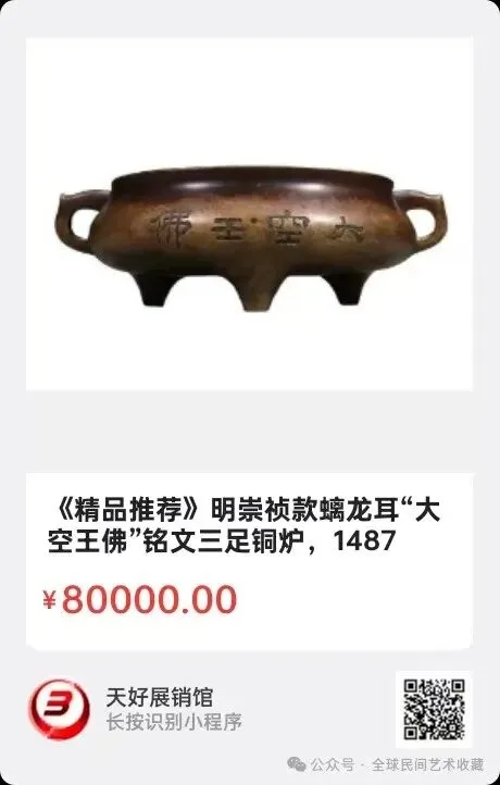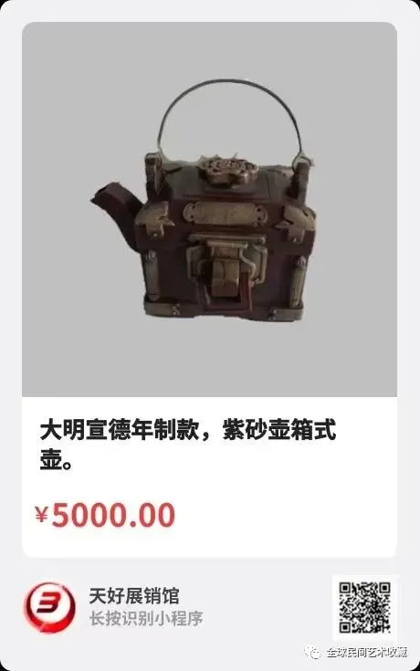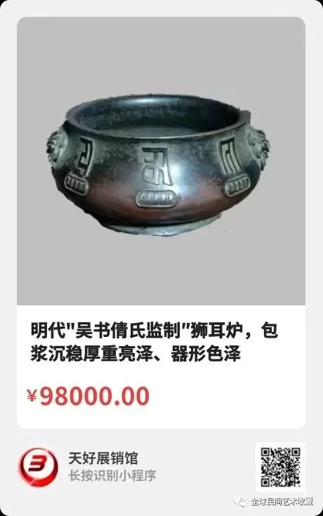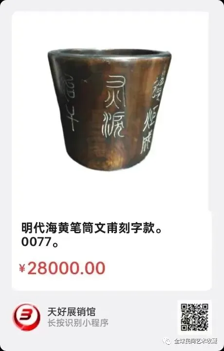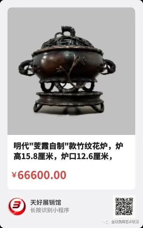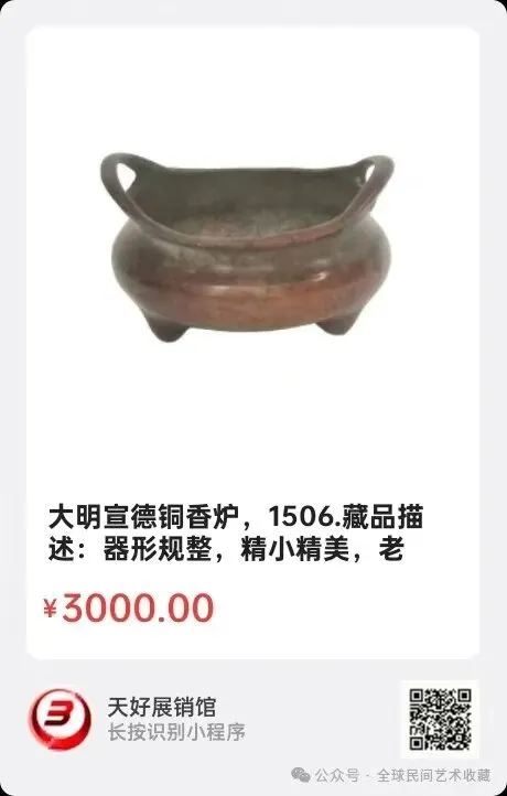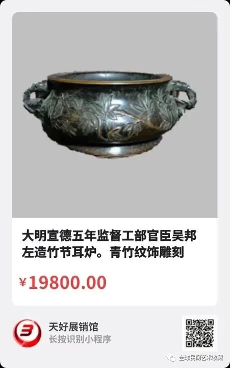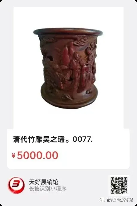 地点:《全球民间艺术收藏》《天好文化》,《天好展销馆》前二个微信公众号每期发布展讯,直接扫码进《天好展销馆》购买。