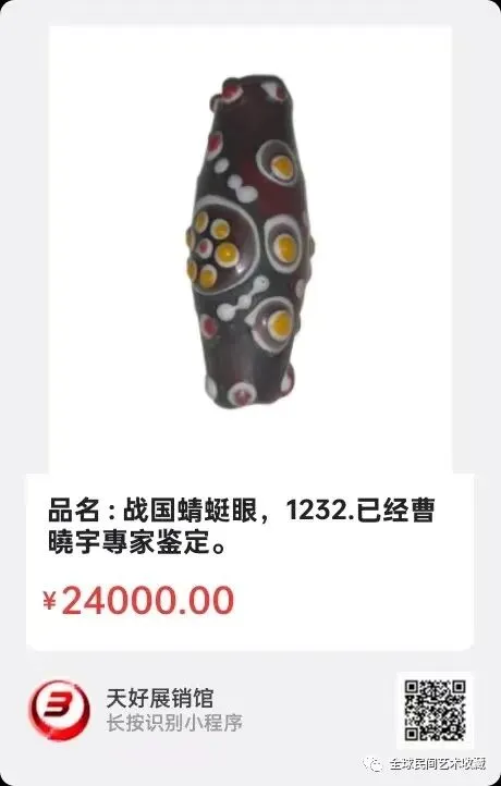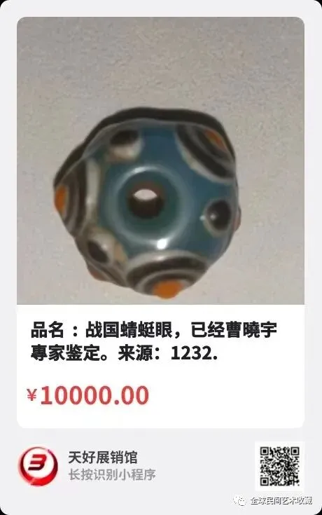 品名 : 战国蜻蜓眼,尺寸 : 直径約 1.6 cm,高度約 1.6 cm,已经曹曉宇專家鉴定。来源:1232.V。