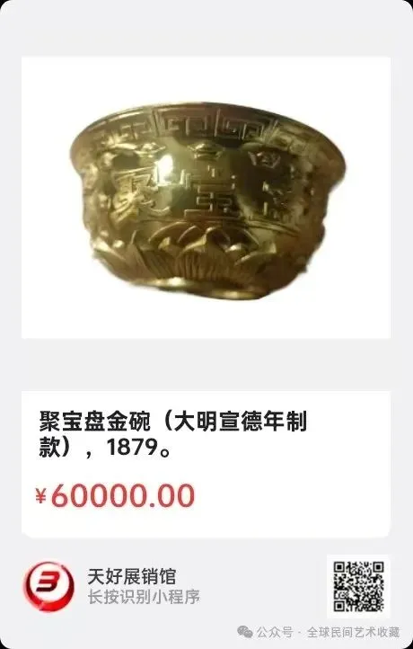 聚宝盘金碗(大明宣德年制款)11.8X5.7X5cm 330g,来源1879。
