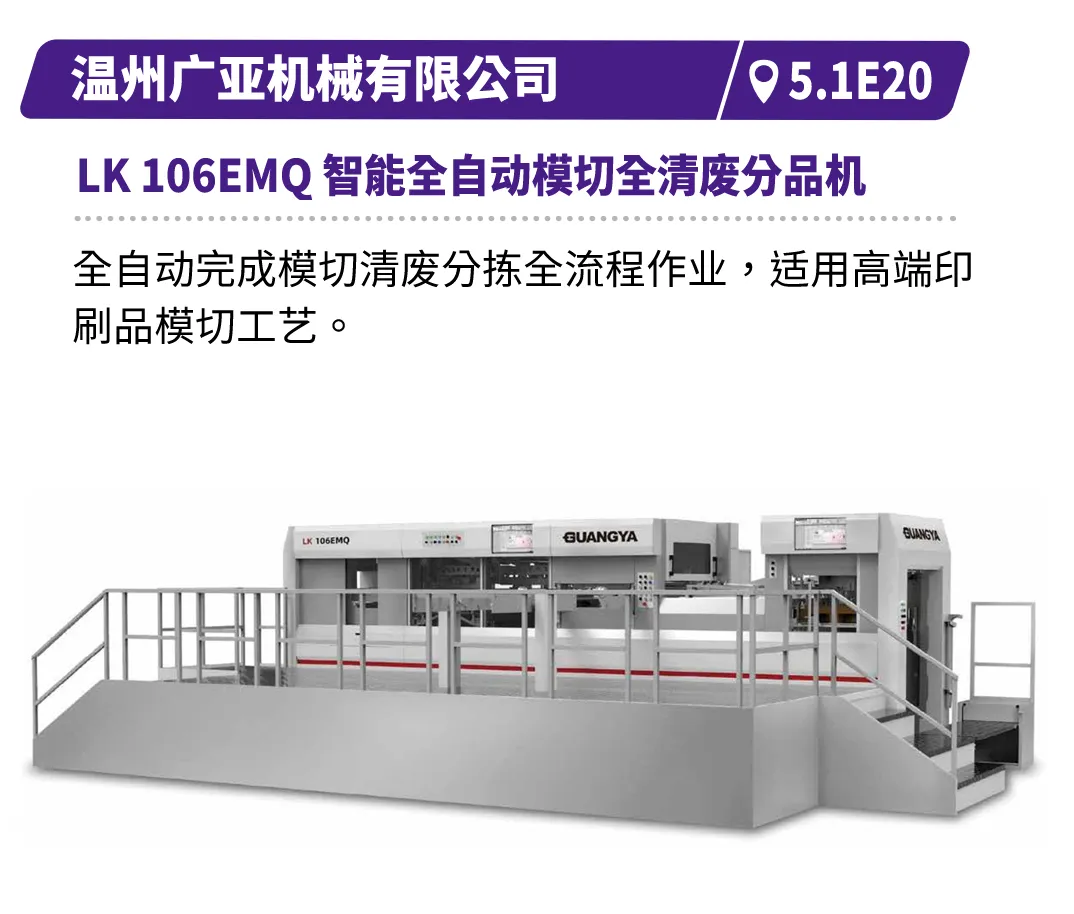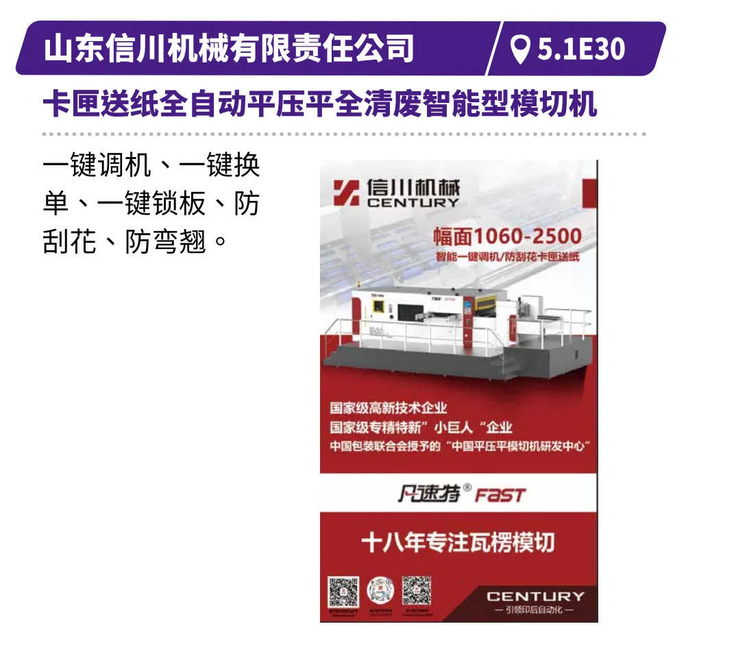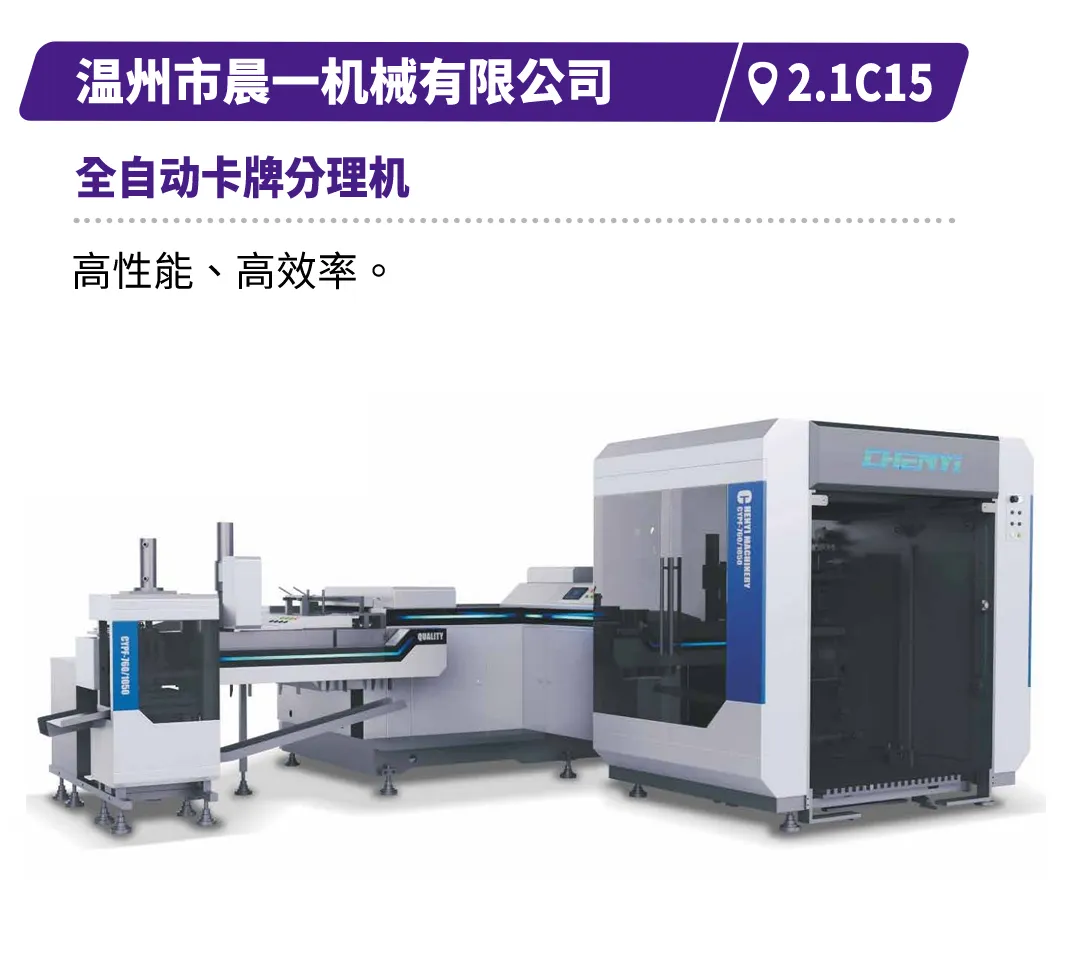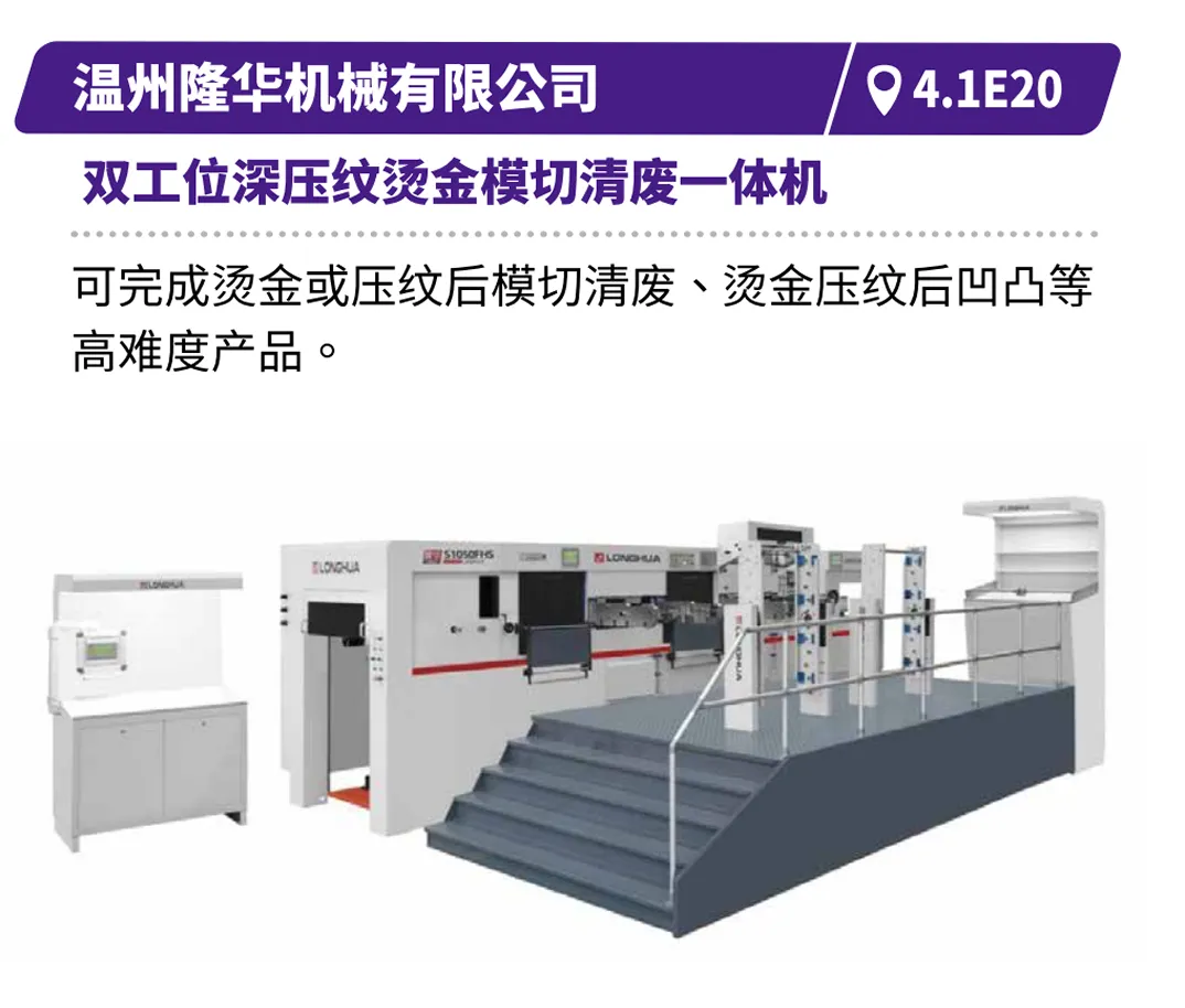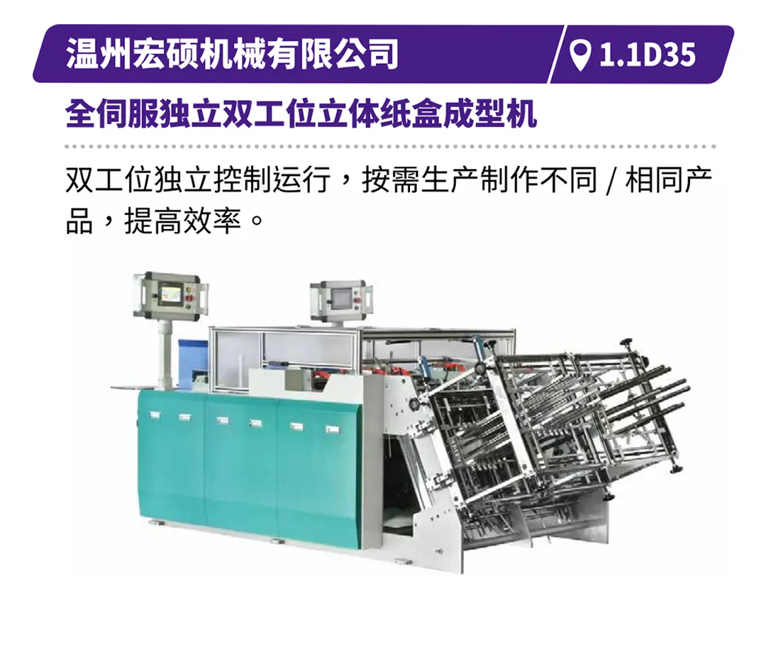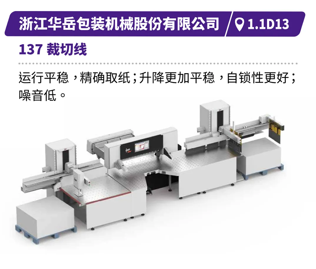 现场直击浙江劲刚的全自动高速封面组装联动线,展现高效无缝的生产衔接,鸿铭的全自动制盒机、中科精工的智能天地盖制盒机体现精密制造与柔性生产的结合,诠释智能化在复杂工艺中的应用等。