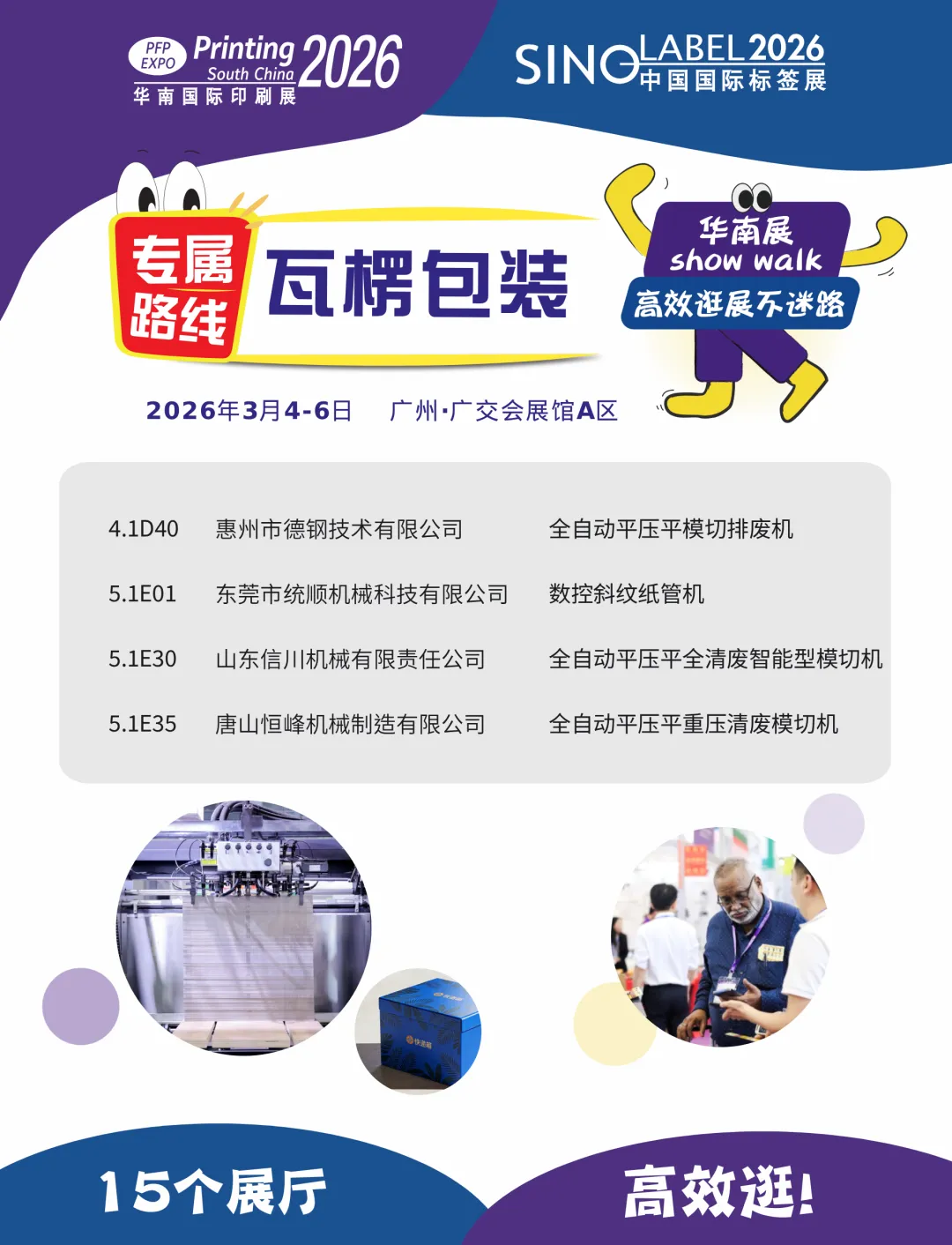 华南印刷展标签展致力于帮助企业在变局中厘清方向,精准找到提质、增效、降本与绿色发展的破局之道。本届展会不仅延续其专业性与影响力,更创新推出“华南展Show Walk”主题参观路线,聚焦彩盒、纸容器包装、瓦楞包装三大核心领域,为业内人士精心规划了一场系统化、沉浸式且极具前瞻性的探索之旅,助您精准破局,赢定未来。
