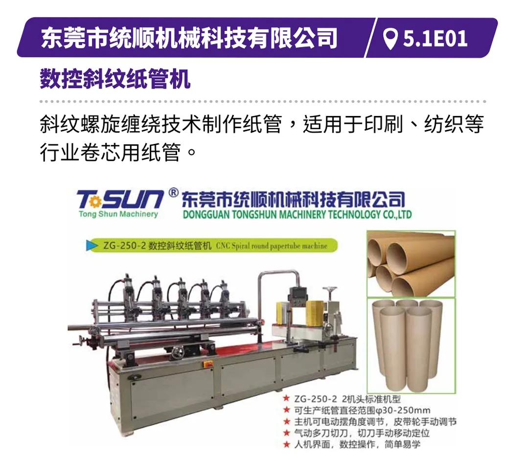 如惠州德钢的全自动平压平模切排废机,在速度、精度与安全性上实现飞跃;山东信川的卡匣送纸全自动模切机,通过一键智能操作简化复杂流程;唐山恒峰的全自动重压清废模切机,确保高速运行下的恒稳精度;东莞统顺的数控斜纹纸管机,以创新缠绕技术拓展工业卷芯应用。