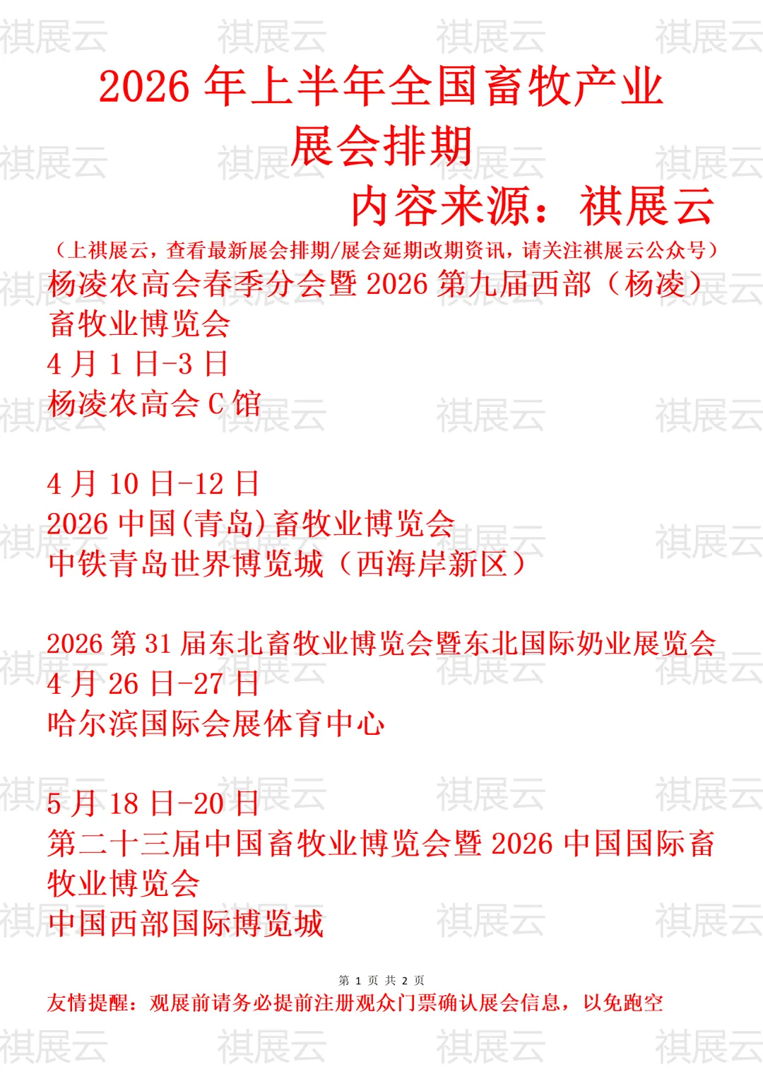 会展资讯丨2026年上半年全国奶业/畜牧产业展会排期