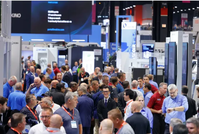 参展商:1,737家(来自35个国家和地区,分布于1,609个展位),美国1,445家、中国大陆92家、中国台湾67家、德国46家、加拿大42家等。观众:89,020名注册观众(来自110个国家),含Smartforce学生峰会14,713人;公司管理层25%、工程部门24%、生产/质量部门21%。展品与同期:展出机械总重超4000万磅;会议注册量较2022年增长53%,聚焦自动化、AI、增材制造等前沿技术。
