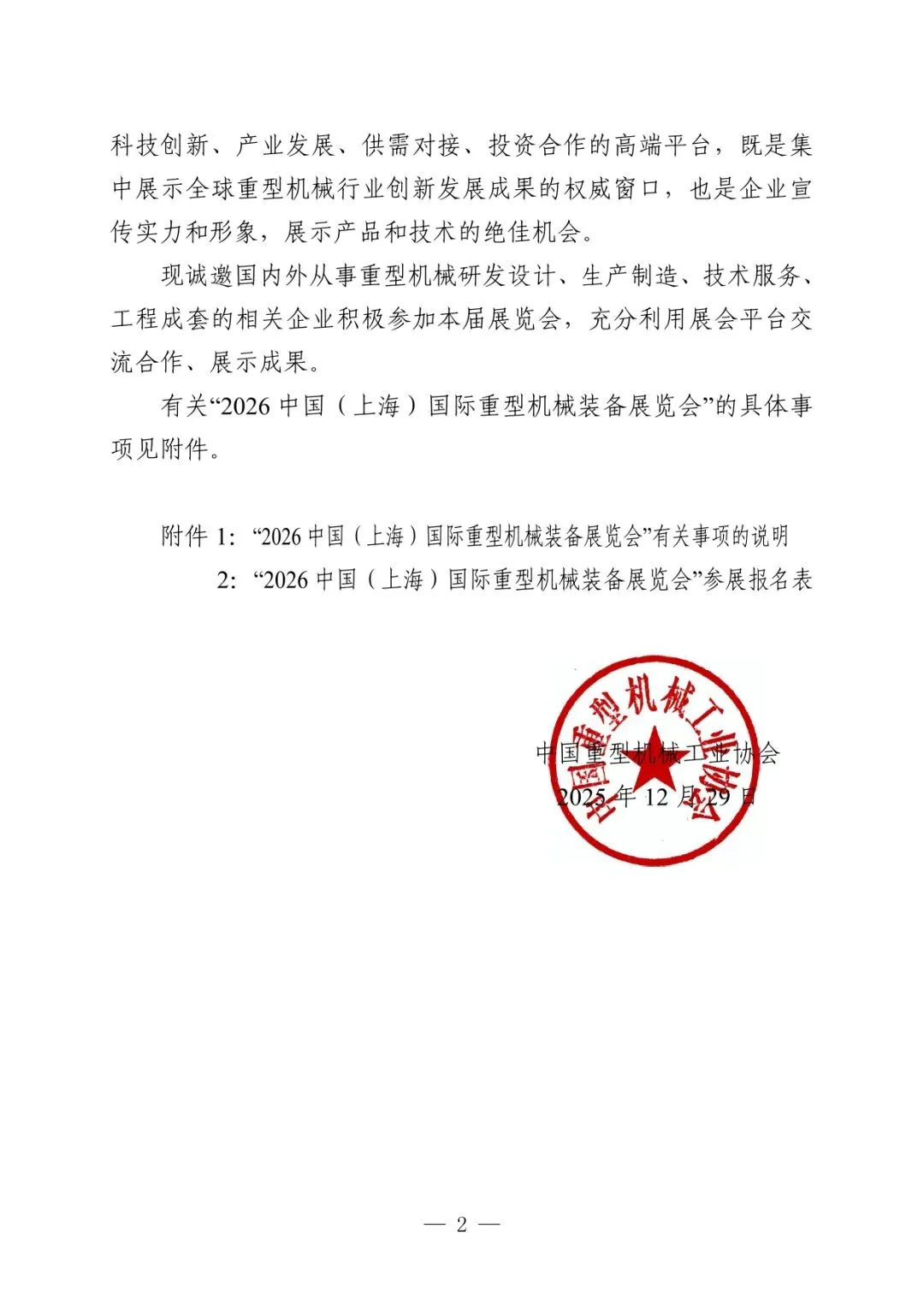 2026中国(上海)国际重型机械装备展览会9月21日-23日上海新博览中心