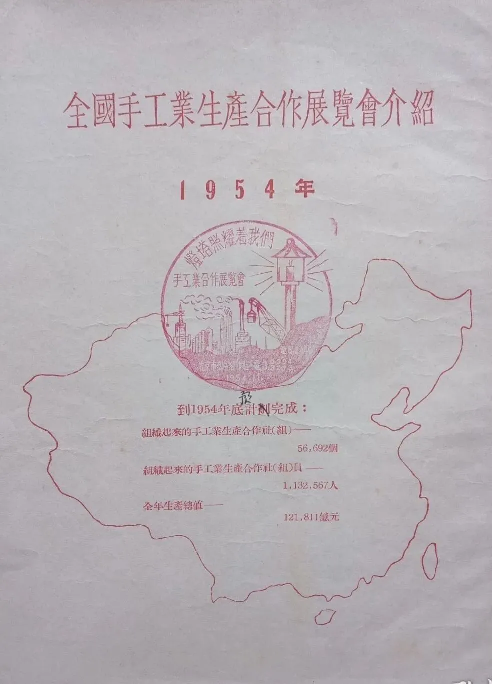 1954年11月21日,全国手工业生产合作展览会在北京中山公园开幕。展览分农具、百货、玩具、五金、工艺美术和技术革新等六大部分,展品共2000多件。其中第五部分为“工艺美术品”。