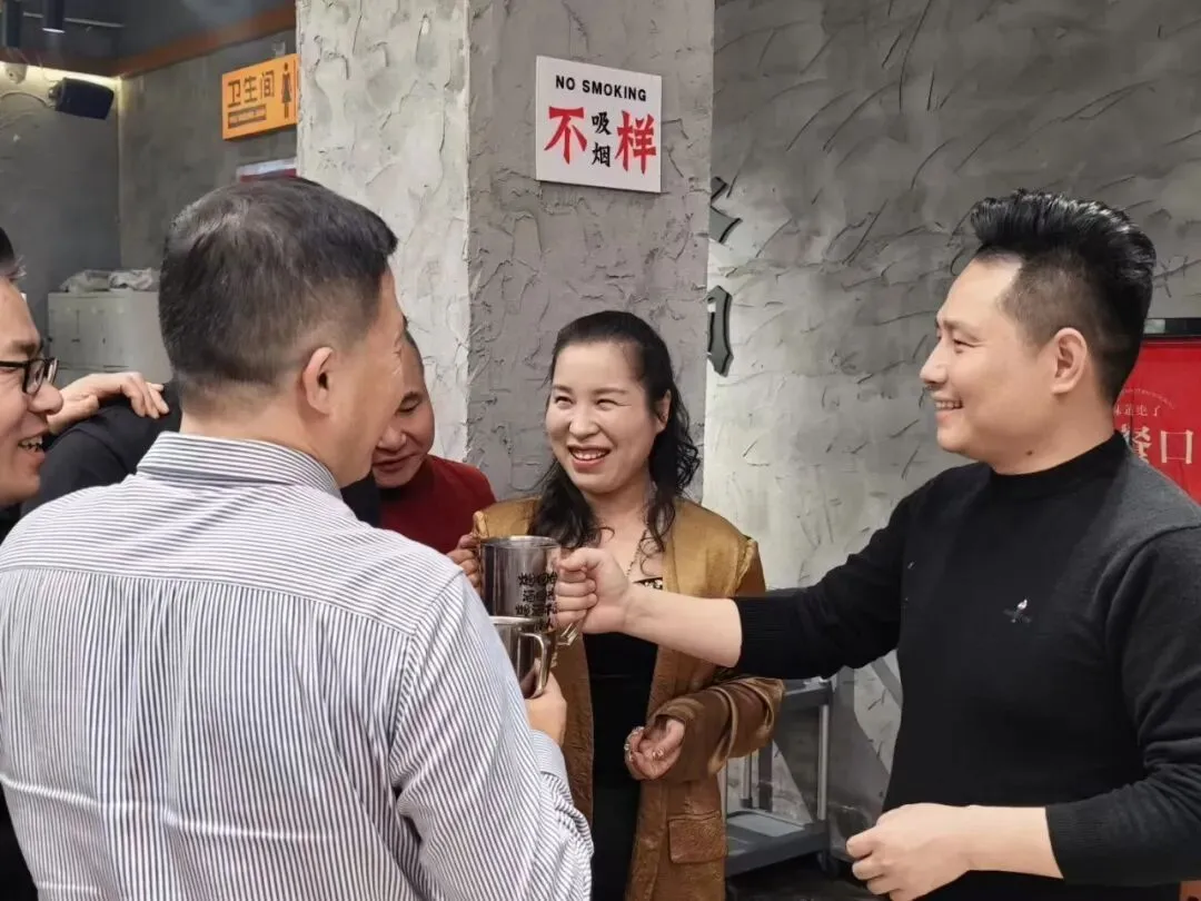 接着开心、快乐、感动的月底聚餐开始了,商鞅老师亲自给大家敬酒,感谢每一位团队伙伴在1月份每个岗位上付出的努力,看看他们的表情,就知道喝的有多么开心了。