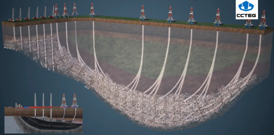 西安研究院基于常规或定向钻孔注浆、地下连续墙、防渗膜等侧向帷幕截流技术完成了朱仙庄矿、扎尼河矿、张家峁矿等全部大型帷幕水害治理项目,分别建成了国际规模最大、技术难度最高的“地下长距离混合介质悬挂式截水帷幕”“半封闭沟槽灌入式+桩孔压入式弧线型落底截水帷幕”“大型水体旁火烧区地面钻孔双位双向引流注浆截水帷幕”,解放了大量受水威胁煤炭资源、节约了大量疏排水费用、保护矿坑生态环境,既科学开发了“金山银山”,又有效保护了“绿水青山”,为截水减排、节能减碳提供了煤科方案,正在元宝山、宝清、西湾等矿井推广应用;同时也为国际截水减排提供了中国方案,有望在土耳其、孟加拉、巴基斯坦等“一带一路”国家露天矿及浅埋深井工矿推广应用。