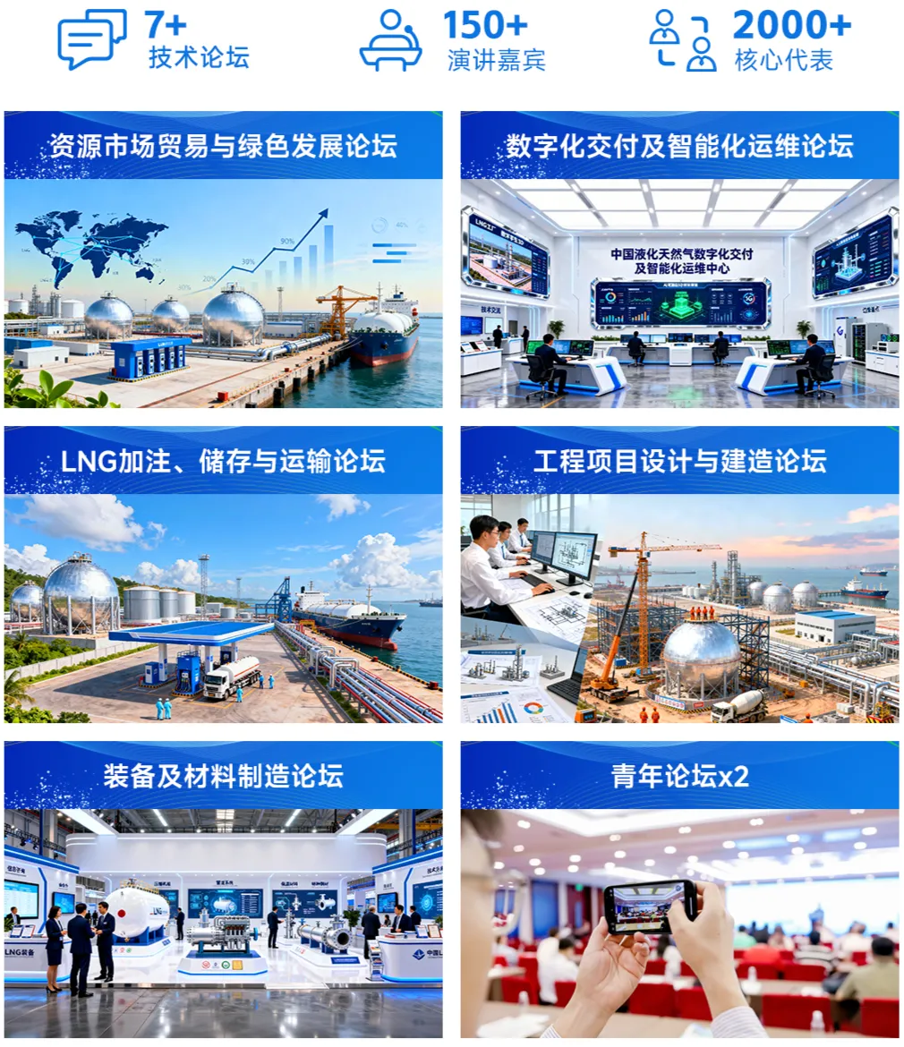 第六届LNG技术与成果展同期举办7场专题技术论坛,邀请行业专家、学者和企业高管,围绕能源发展变革新趋势与新思考、LNG转型新机遇与新政策、创新技术新进展与新成果等热点议题进行深入探讨,助力参展企业把握发展脉搏,提升核心竞争力。