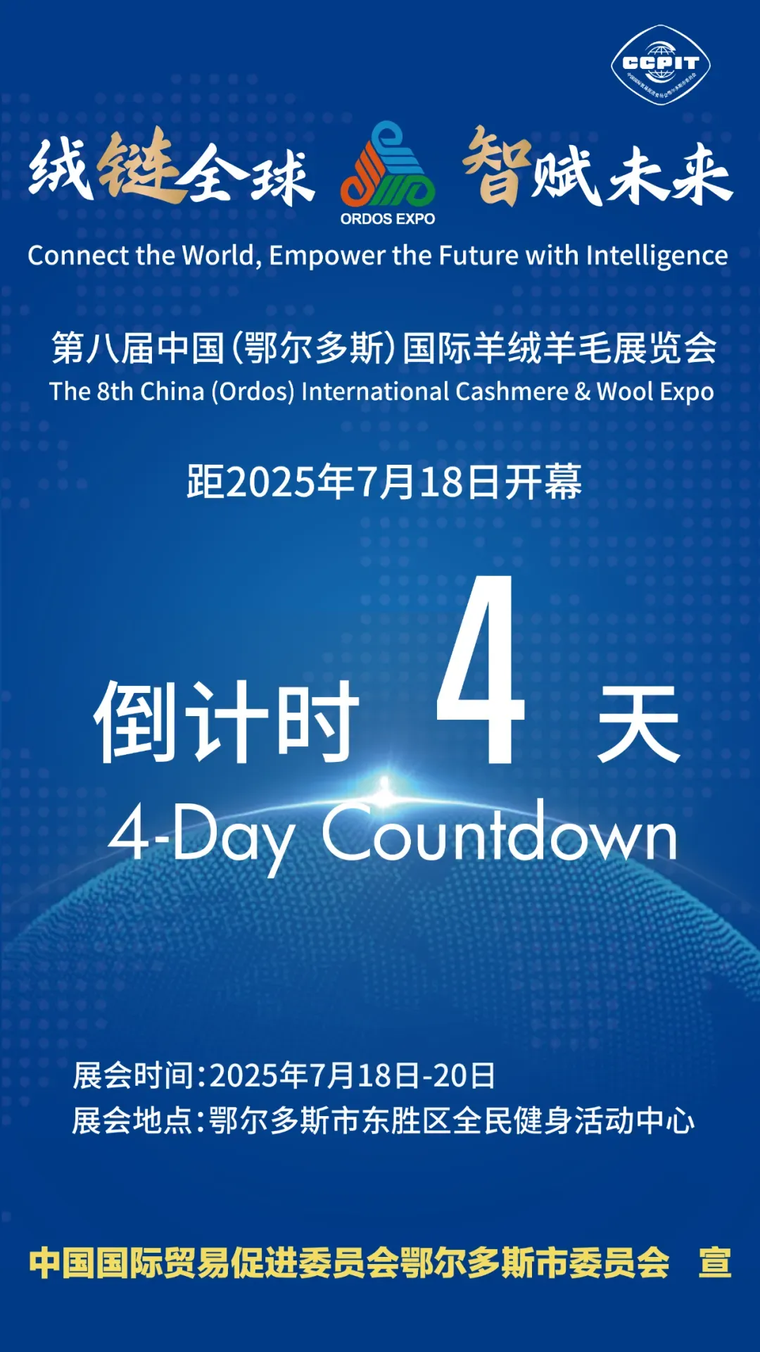 距离第八届中国(鄂尔多斯)国际羊绒羊毛展览会还有4天!