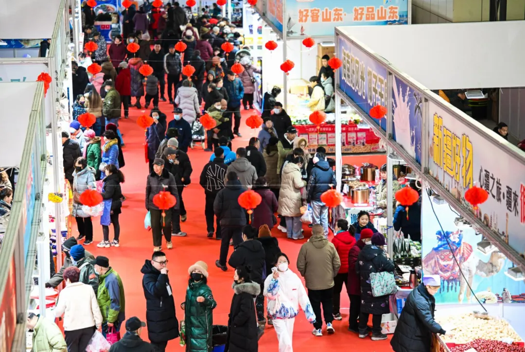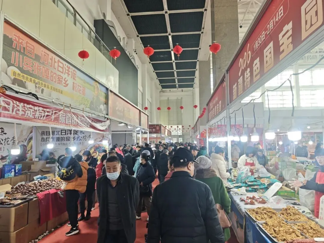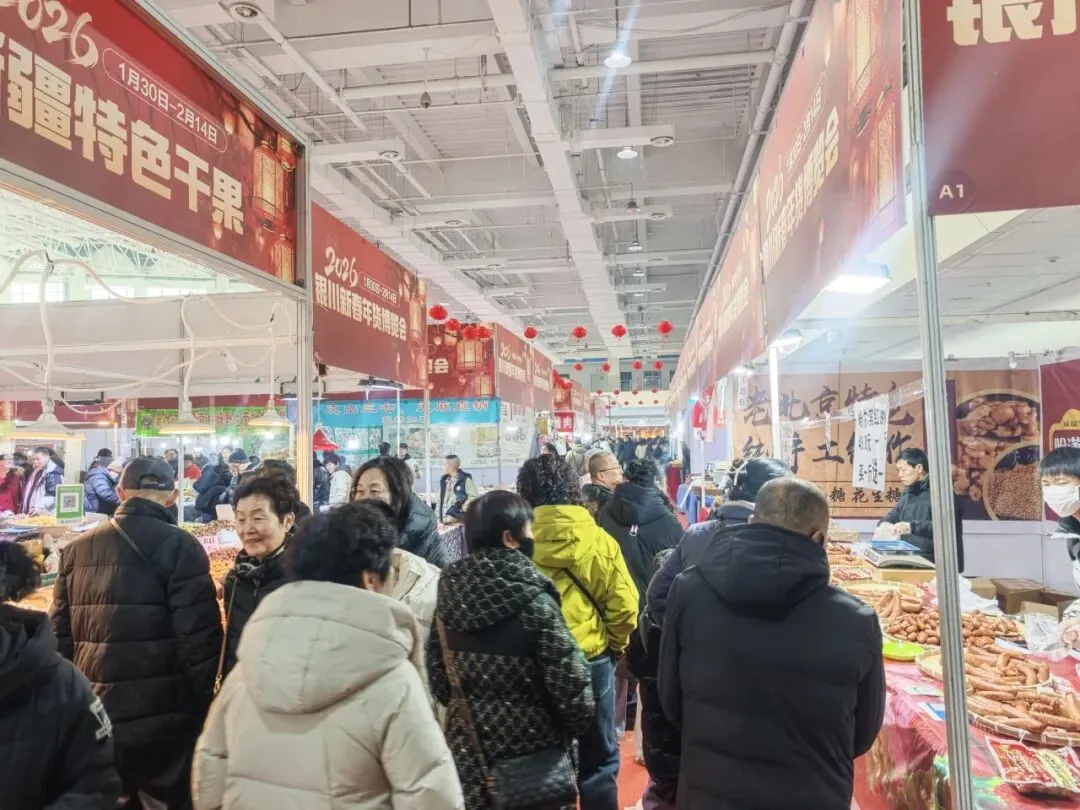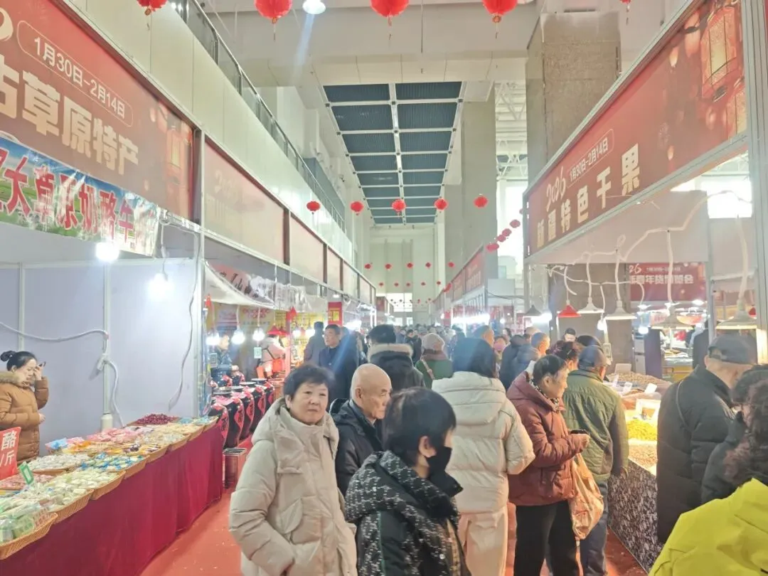 新春年货博览会已火热开展数日,人气持续攀升。走进展馆,瞬间被红火的气氛包围:满眼皆是喜庆的中国红,灯笼高挂,春联飘扬,空气里交织着食物香气与欢快的背景音乐,仿佛提前进入了除夕夜。