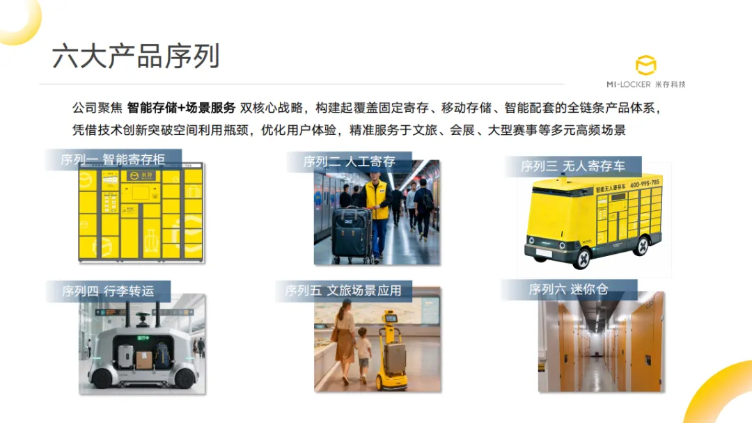 米存科技作为国内智能化旅游行李服务的领军企业,成功构建“寄存-转运-仓储”完整服务体系,已累计服务超百万游客,其产品智能自助行李寄存柜、智能无人寄存转运车等,可为商圈商旅游客提供更便捷的配套服务。