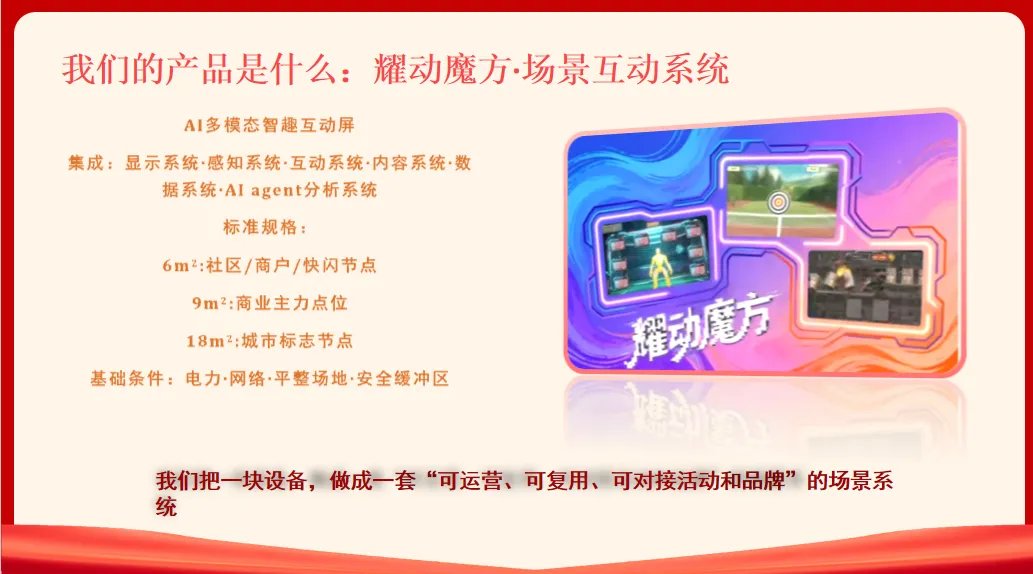 光耀恒拓(成都)以“科技赋能体育”为核心理念,在AI多模态交互识别、智能场馆数字化等领域具备国际国内领先优势,其产品“AI多模态智趣互动屏——耀动魔方”,以人机互动游戏竞技方式展示多模态智能交互技术,可适配不同场景主题,提供球类互动游戏等,为商圈打造智能化、趣味化的运动消费新场景。
