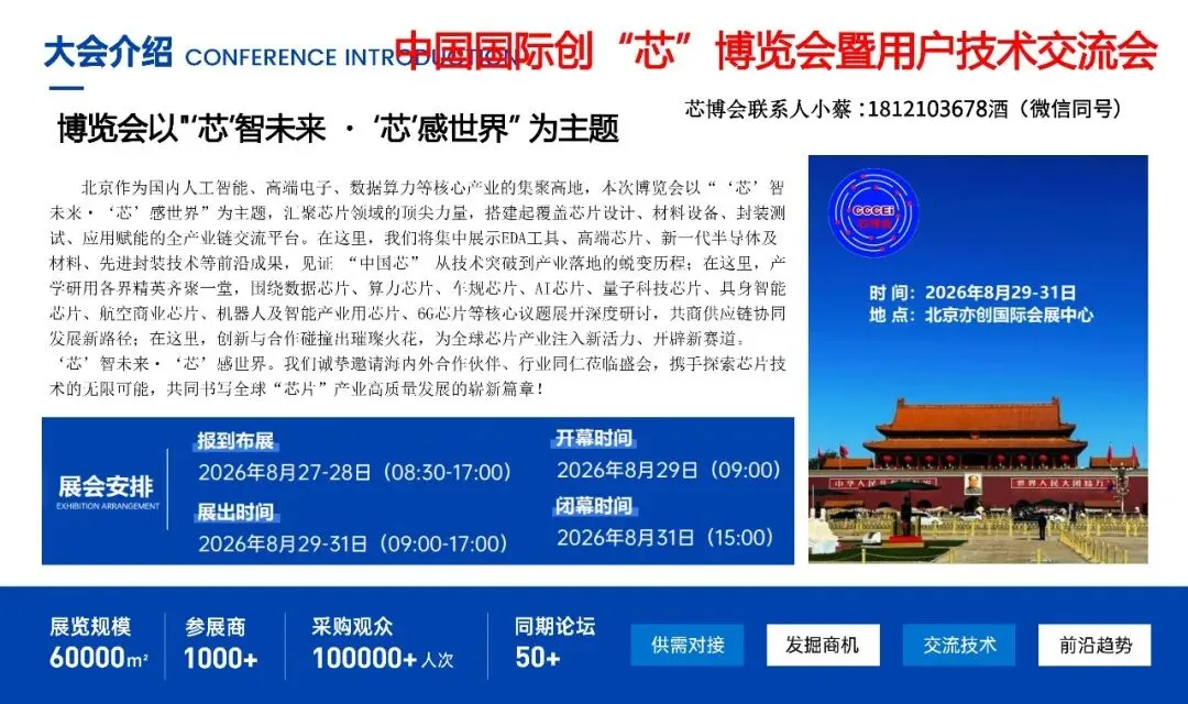 北京作为国内人工智能、高端电子、数据算力等核心产业的集聚高地,本次博览会以“‘芯’赢未来・‘芯’智世界”为主题,汇聚芯片领域的顶尖力量,搭建起覆盖芯片设计、材料设备、封装测试、应用赋能的全产业链交流平台。在这里,我们将集中展示EDA工具、高端芯片、新一代半导体及材料、先进封装技术等前沿成果,见证 “中国芯” 从技术突破到产业落地的蜕变历程;在这里,产学研用各界精英齐聚一堂,围绕数据芯片、算力芯片、车规芯片、AI芯片、量子科技芯片、具身智能芯片、航空商业芯片、机器人及智能产业用芯片、6G芯片等核心议题展开深度研讨,共商供应链协同发展新路径;在这里,创新与合作碰撞出璀璨火花,为全球芯片产业注入新活力、开辟新赛道。