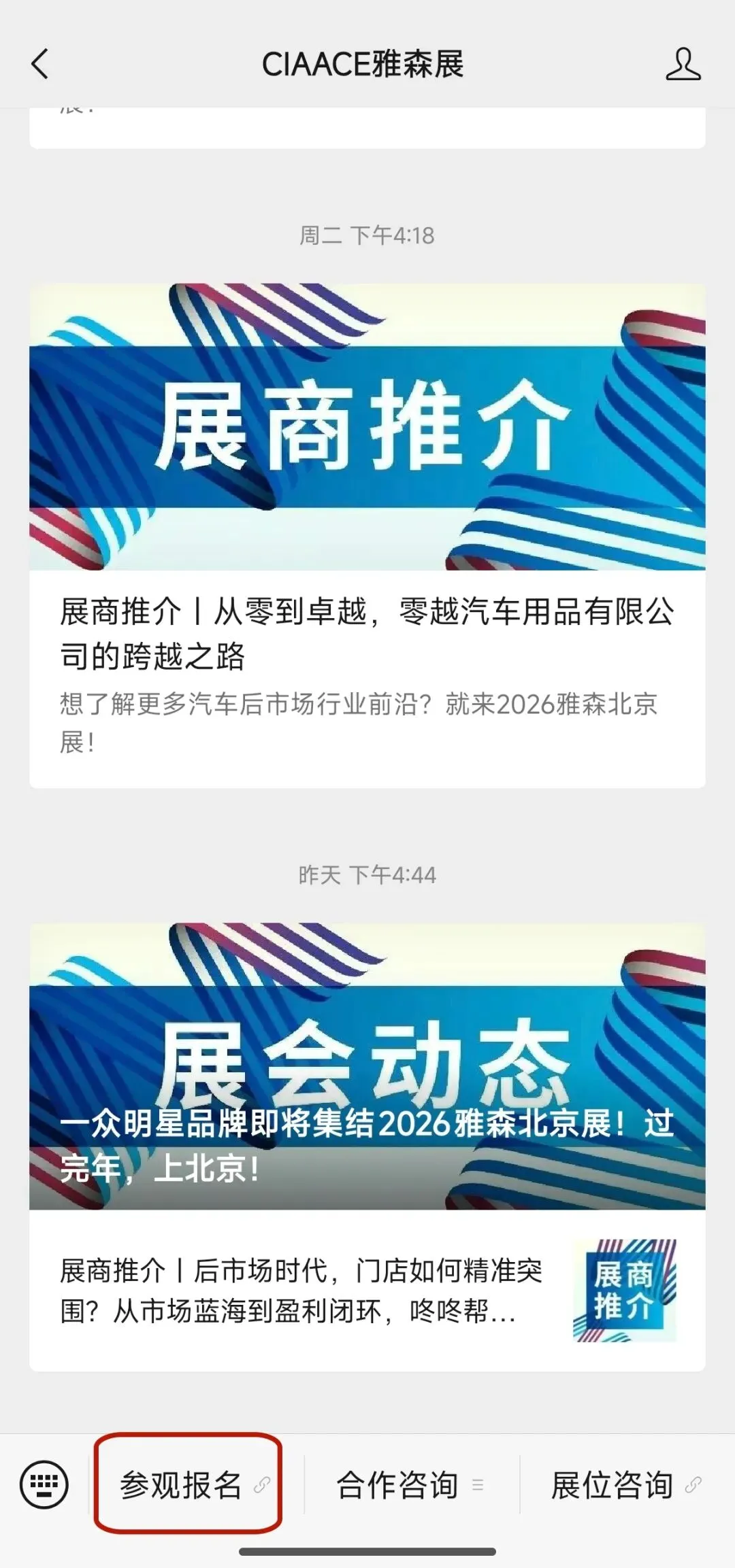 微信关注展会官方公众号“CIAACE雅森展”