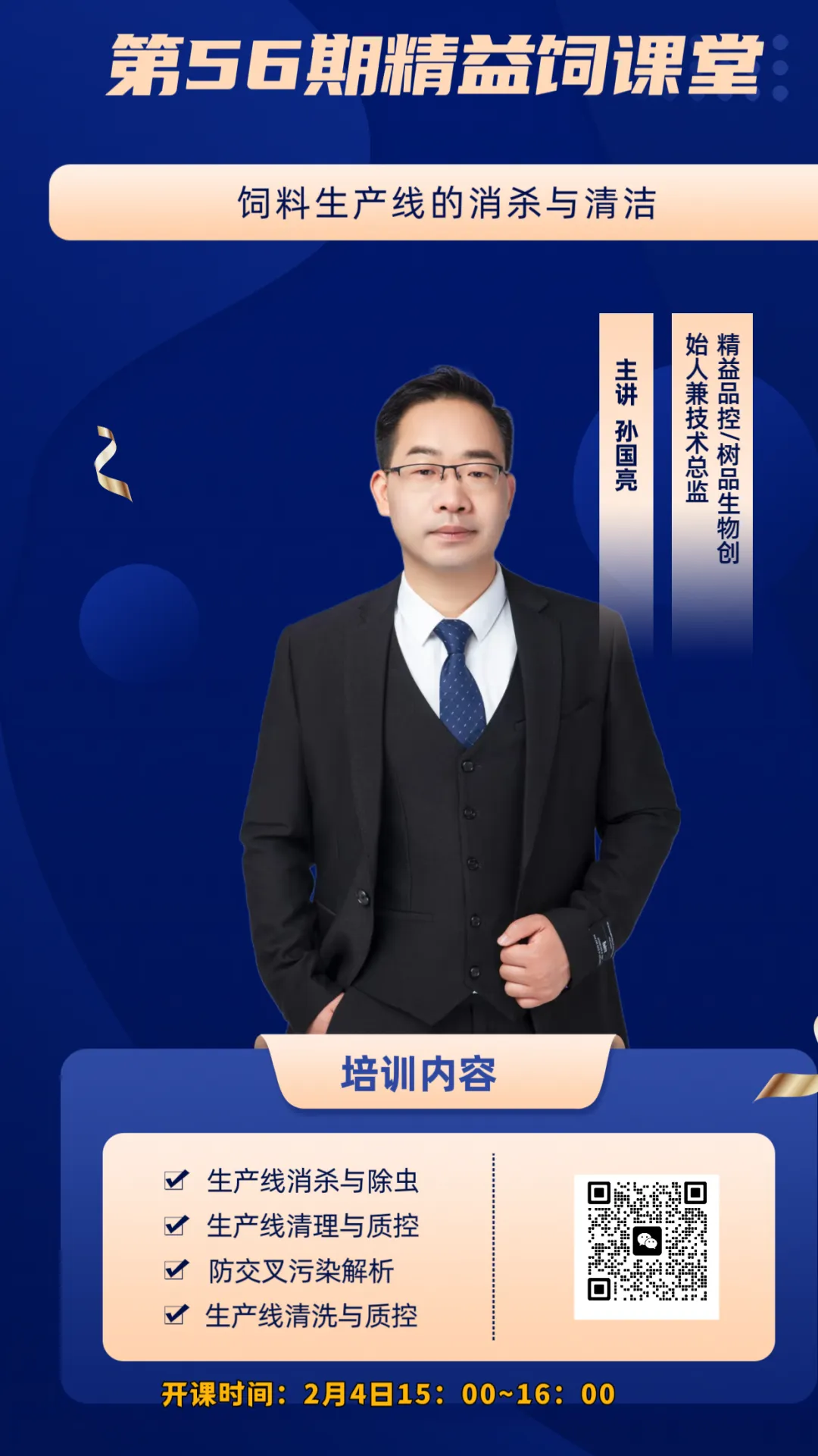 重要通知:第56期精益饲课堂《饲料生产线的消杀与清洁》今天下午三点开场直播,请报名学员提前安排好时间收听收看,特此通知!