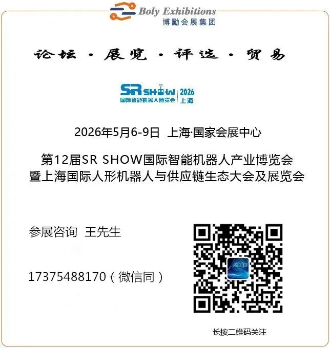 当全球人形机器人产业迈入 “ 技术验证向规模化商用 ” 的关键转折期,当中国以超 50% 的全球市场占比领跑行业 发展,一场聚焦全产业链协同、链接全球核心资源的专业盛会正蓄势待发——2026 第12届SR SHOW国际智能机器人产业博览会暨上海国际人形机器人与供应链生态大会及展览会,将于2026年5月 6-9日在国家会展中心(上海)举办。我们诚挚邀请您作为参展商或专业观众,共赴这场 “ 产业链协同创新、商业化机遇落地 ” 的行业盛宴。