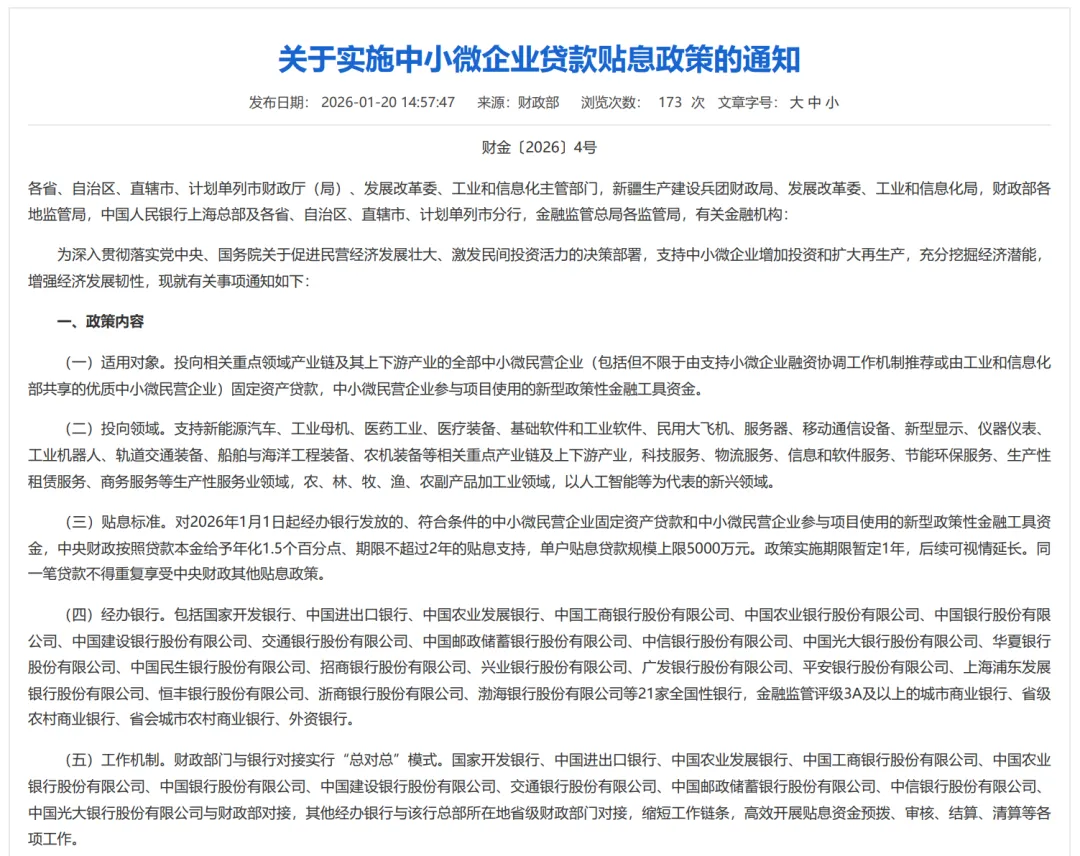 政策时效:2026年1月1日起新发放贷款可申请,实施期暂定1年,后续可视情延长。