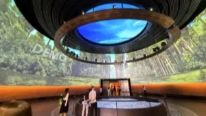 该穹顶影院采用前沿的7D动感座椅系统,搭配震撼的16K超高清 LED 屏幕,带来极具冲击力的沉浸式体验。观众可真实感受到俯冲、倾斜、失重等动态效果,并结合风感、水雾等环境模拟,让人仿佛身临其境,几乎难以分辨虚实。