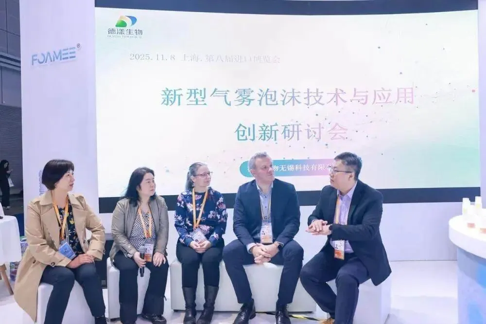 更值得一提的是,德漾生物在进博会上迈出了关键一步。在11月8日举办的“新型气雾泡沫技术与应用创新研讨会”上,公司与来自新加坡和德国的合作伙伴共同签署了战略合作伙伴协议,聚焦“新型气雾泡沫技术”的开发与应用。该技术被业界认为是外用制剂领域的重要革新方向,因其能显著改善药物在皮肤上的铺展性、渗透性,从而大幅提升药物的吸收和治疗的有效率,进而提升了患者使用的便捷性与舒适度。德漾生物正致力于将药用页岩油等经得起时间检验的功效确切,天然安全的活性物质与前沿药物递送系统相结合,以解锁其更广泛的临床应用潜力。