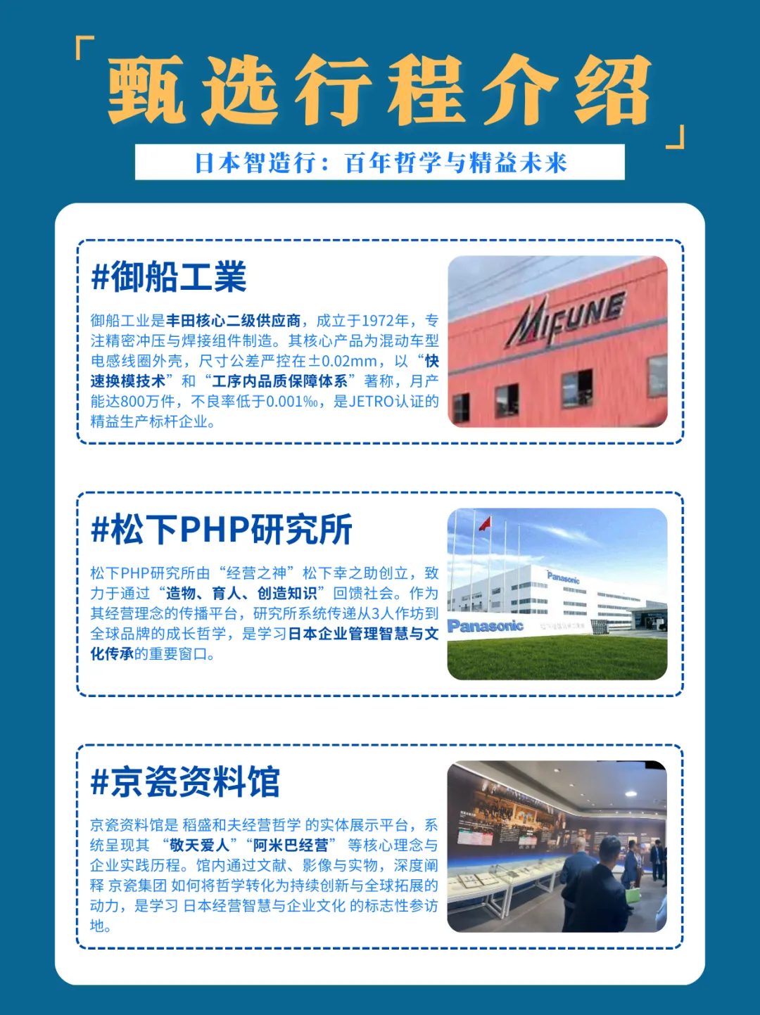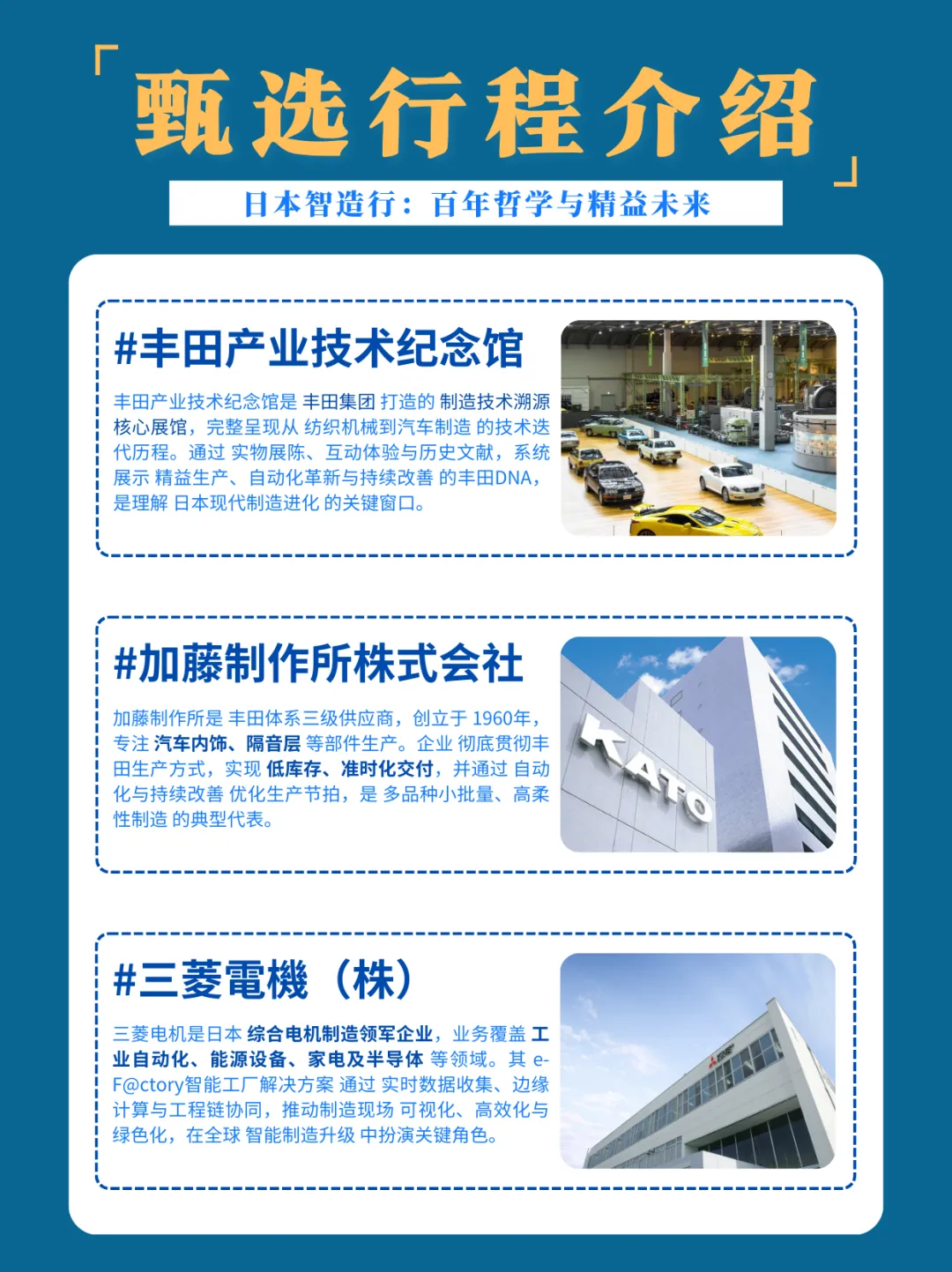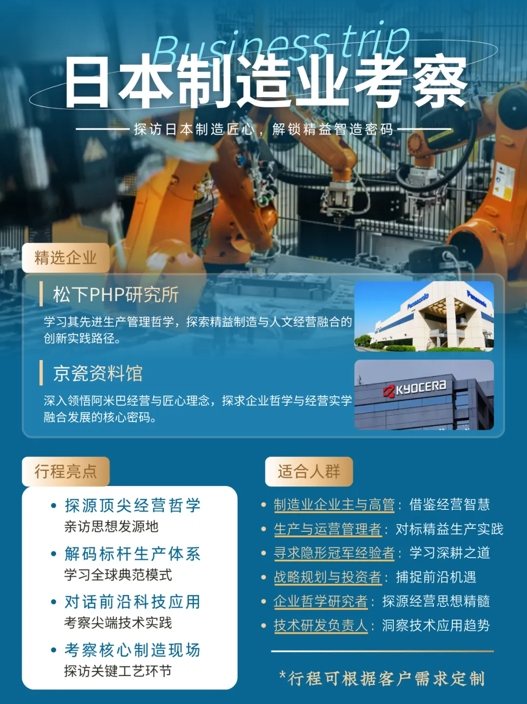 ?从 丰田供应链 的毫米级精度,到 松下、京瓷 的经营哲学,再到 三菱智能工厂 的数据驱动——日本制造不仅是技术,更是一套完整的“技术+管理+文化”系统。本次考察带你走进现场,看懂体系,带回方法。