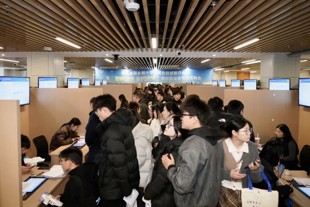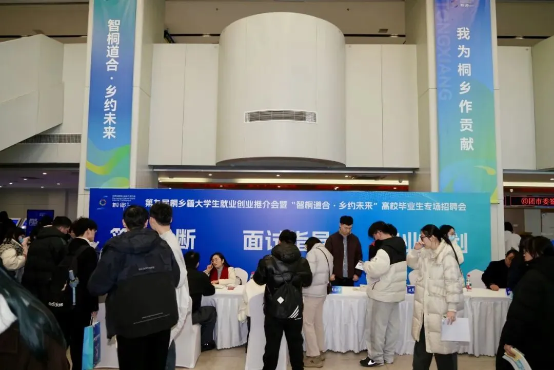 2026年2月3日下午,第九届桐乡籍大学生就业创业推介会暨"智桐道合·乡约未来"高校毕业生专场招聘会在世界互联网人才大厦隆重举行。