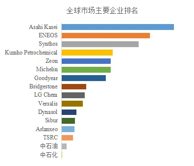 全球范围内,官能化溶聚丁苯橡胶主要生产商包括Asahi Kasei,ENEOS, Synthos,Kumho Petrochemical, Zeon等,他们凭借强大的研发能力、早期技术积累和全球销售网络,在整个官能化SSBR市场中占据较高份额。其中,前三大厂商占有约44%的市场收入份额。