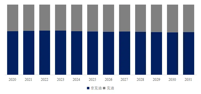 就产品类型而言,目前非充油是最主要的需求来源,占据大约62%的收入份额。