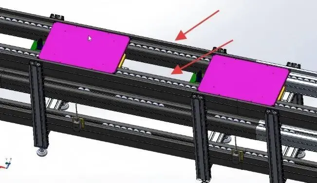双层倍速链需实现工装板循环,上层装配、下层回流,配套2台升降回流机,确保工装板平稳闭环循环。