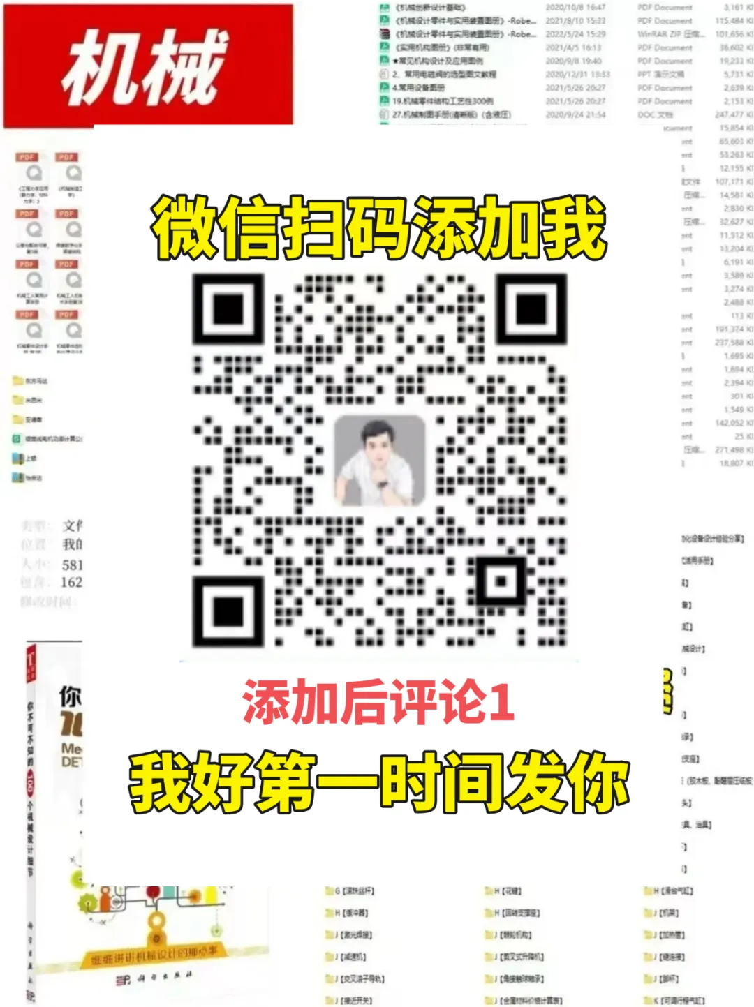☆想入行机械或者转型机械工程师,机械行业选择,机械岗位选择,机械公司选择,机械技术问题解答,简历优化,职业规划等等都可以找我! ☆同学们有任何学习或者工作上的问题,都可以加过来 ☆搞机械设计用的资料我也都有,大家也可以添加我进行领取!