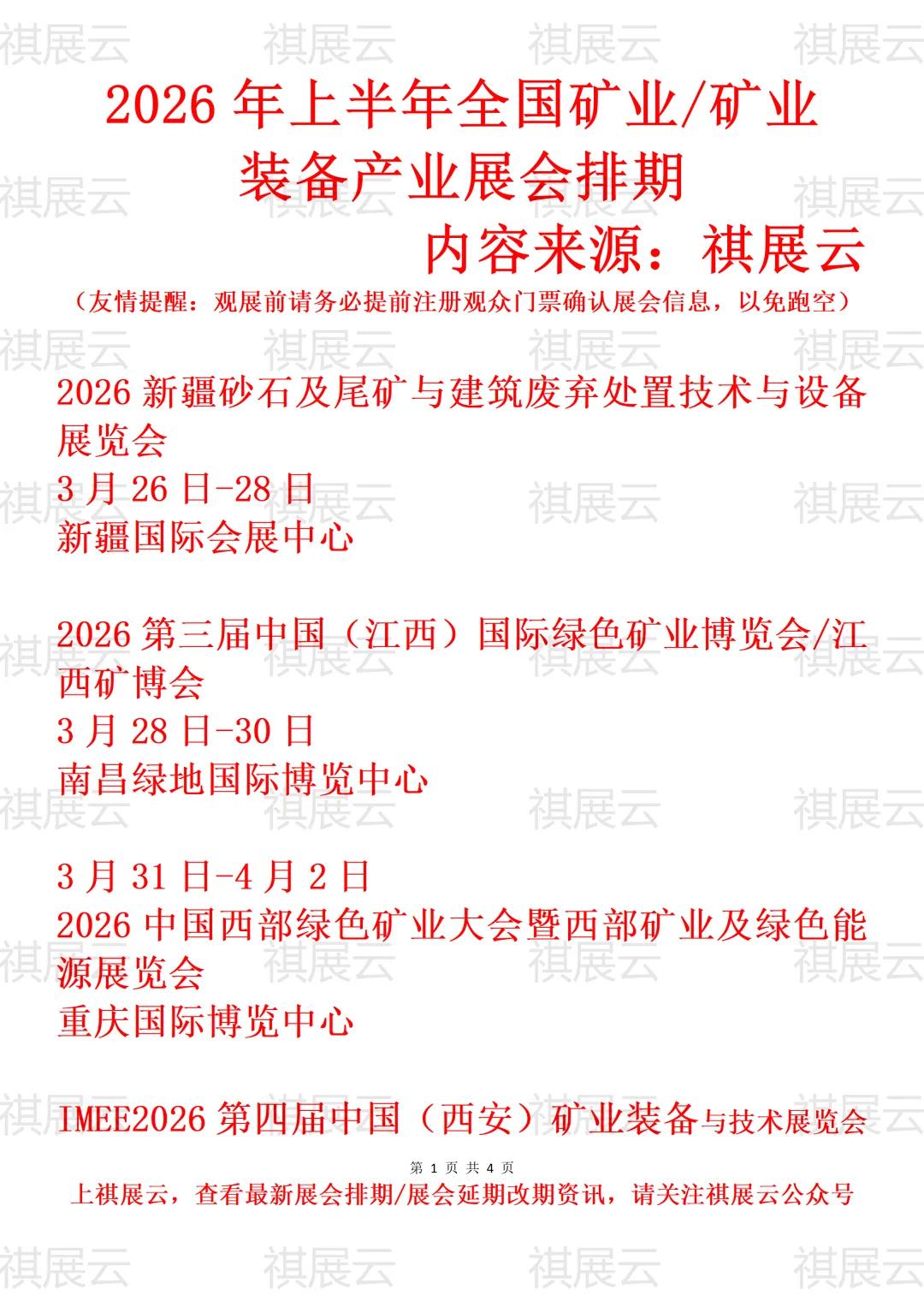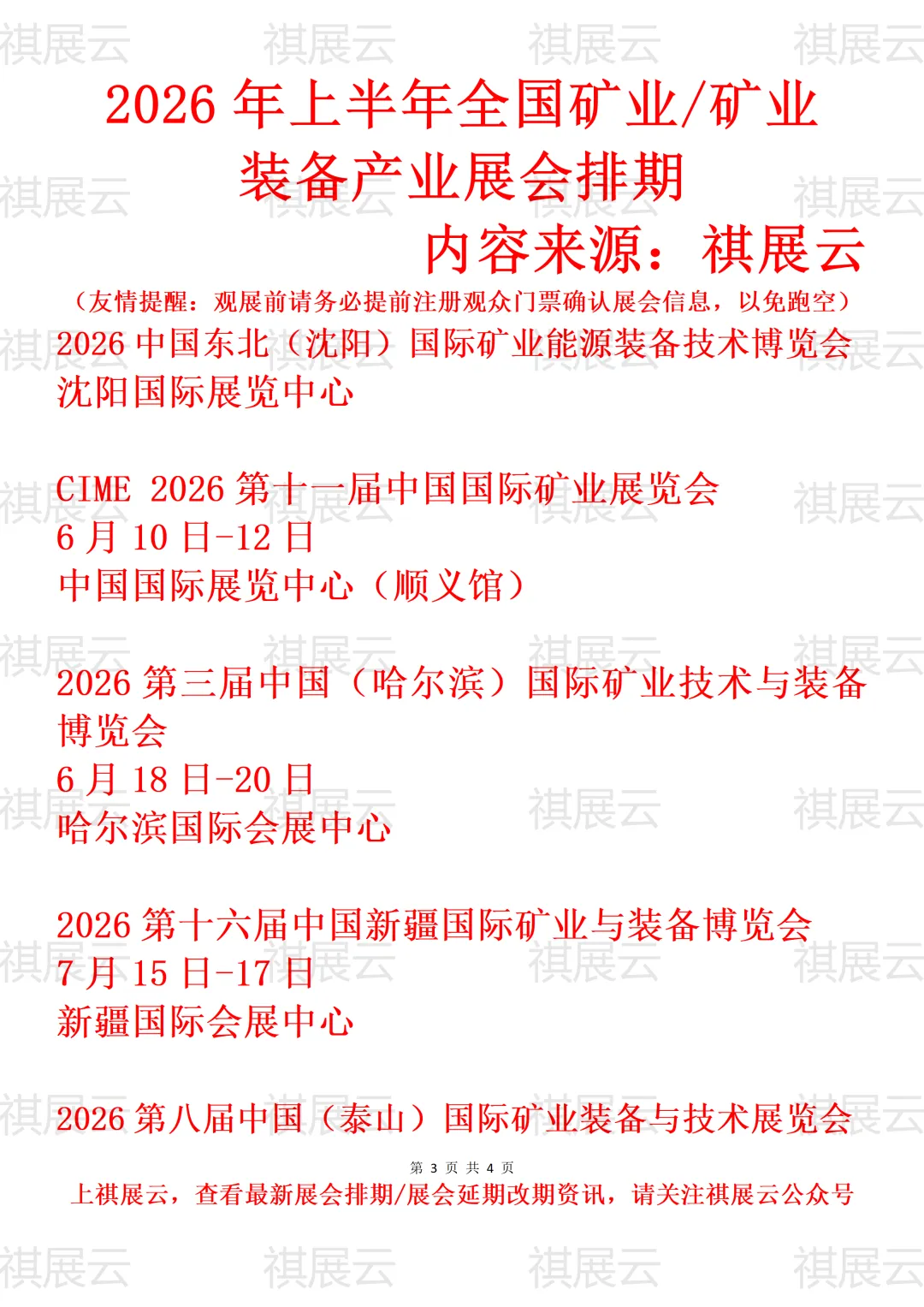 会展资讯丨全国矿业装备/采矿展会2026年上半年展会排期表