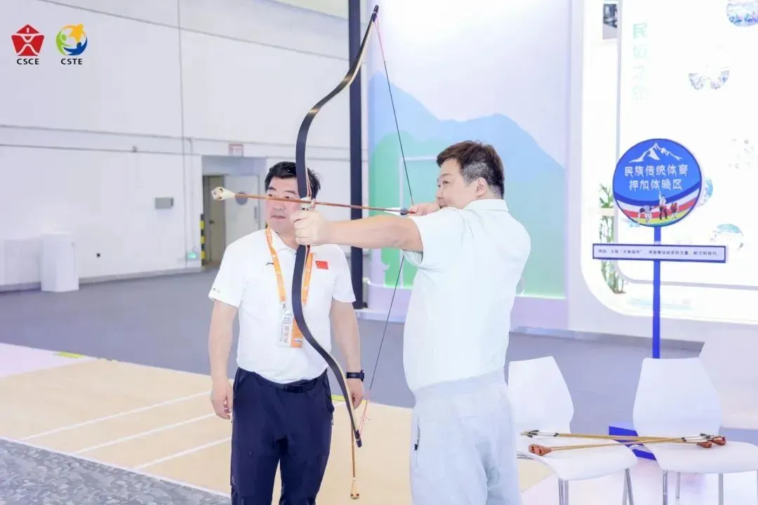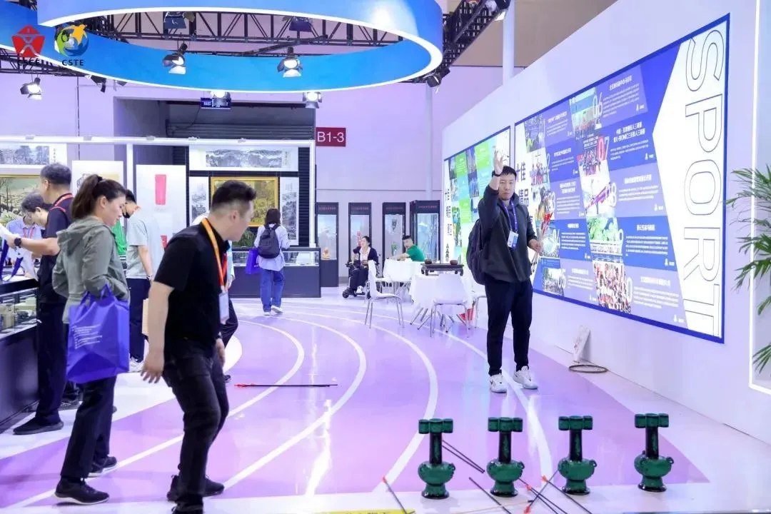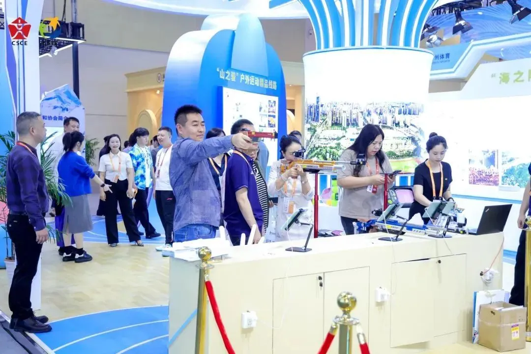 主宾省湖北展区推出VR钓鱼、滑雪场景、马术互动、模拟飞行等体验,带给观众身临其境的项目体验,北京展区的投壶游戏彰显传统体育魅力,西藏展区的工布响箭带领观众感受民族体育特色,江西展区的匹克球体验助力推广新兴体育项目,还有台州展区,更是将巴黎奥运会首金项目十米气步枪体验带到博览会现场,吸引大量观众排队感受射击运动乐趣和竞技体育精神。
