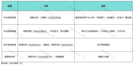 (1)平台级:拥有自研工业大模型或国家级双跨平台;