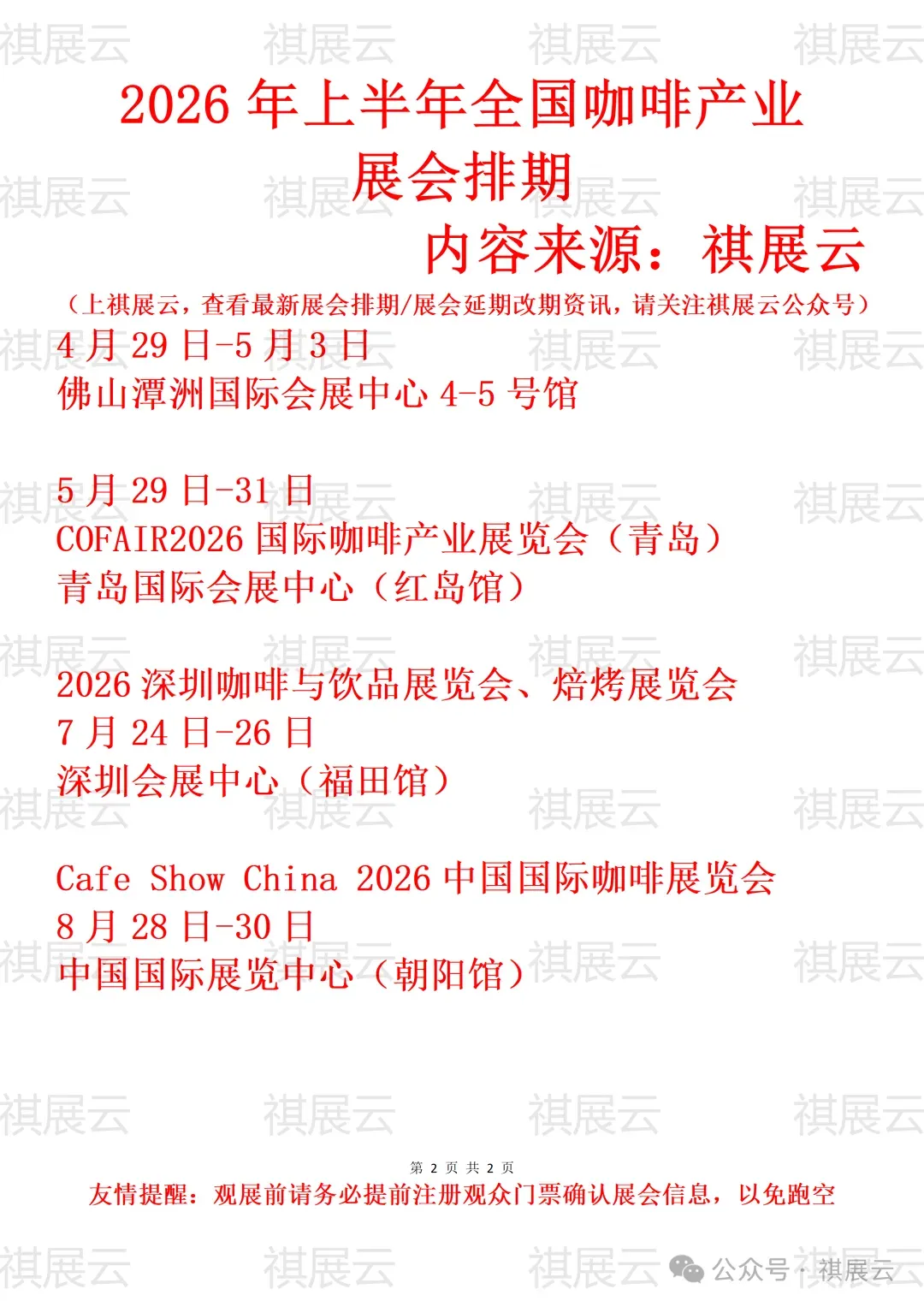 会展资讯丨全国咖啡饮品展会2026年上半年展会排期表