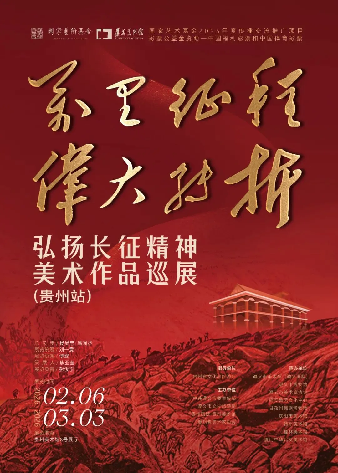 2026年,我们即将迎来长征胜利90周年这一重要历史节点。为深入贯彻落实党的二十大精神,践行习近平总书记“传承红色基因,讲好遵义故事”的殷切嘱托,我们满怀敬意与热忱,隆重推出“万里征程・伟大转折:弘扬长征精神美术作品巡展”。