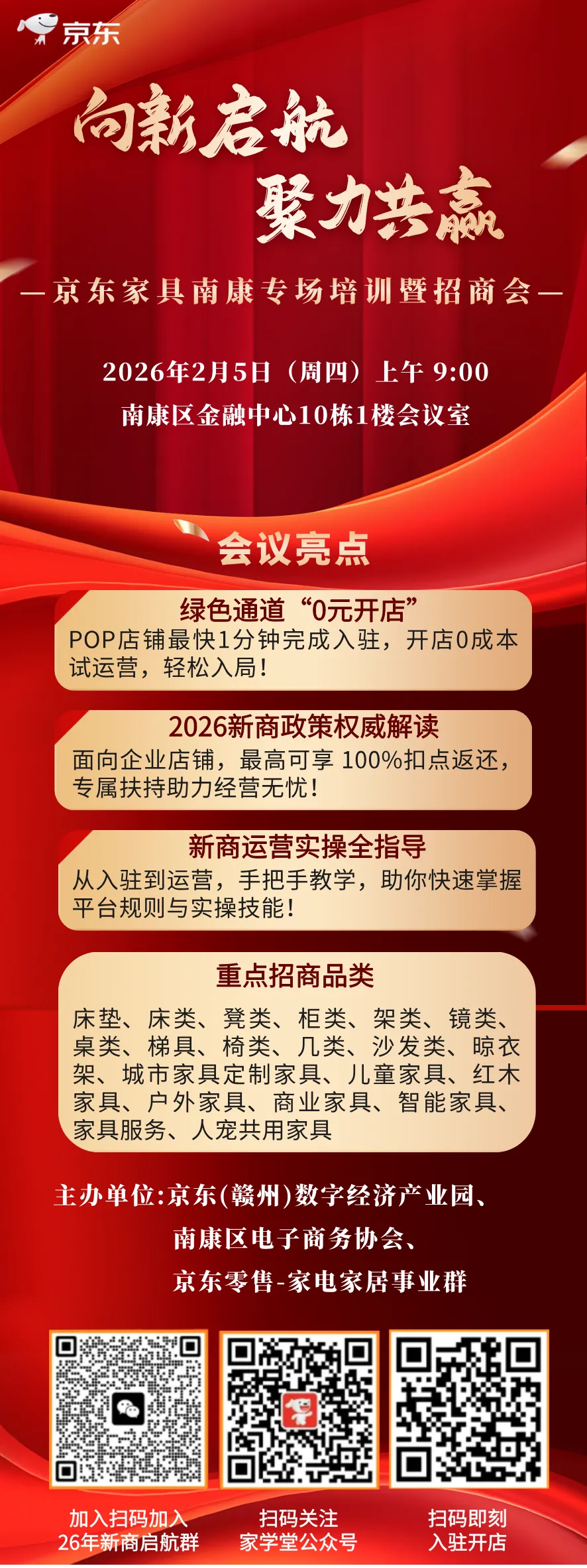 【向新启航 · 聚力共赢】京东家具南康专场培训暨招商会来了,诚邀您共赴这场年末最后一场运营内容分享会!