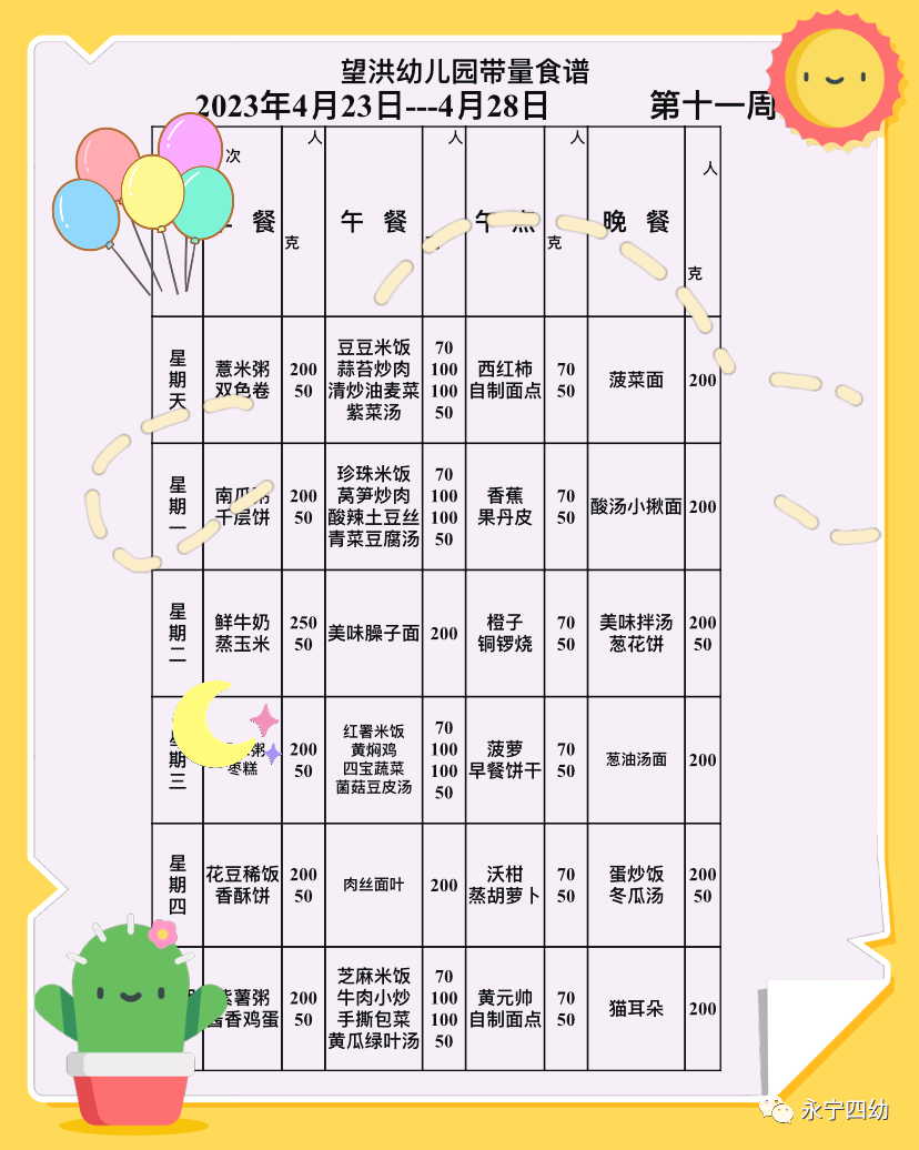 望洪幼儿园第十周营养食谱精彩回顾及第十一周预告