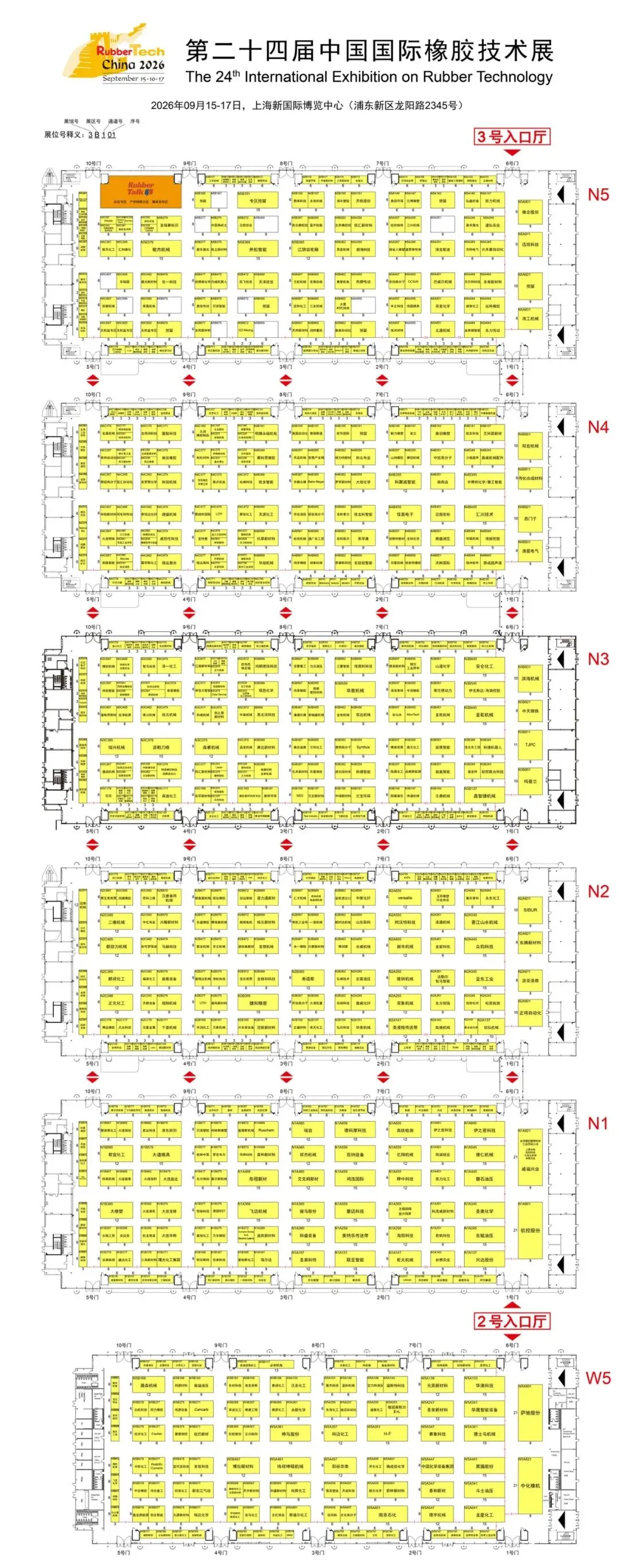 请各位意向展商重点关注文中附带的最新展位图,图中所有空白展位均处于开放预定状态,黄金展位先到先得,尽早锁定即可抢占行业曝光C位。本届展会还将在上海新国际博览中心强势拓展布局,全面覆盖N1、N2、N3、N4、N5及W5六大展馆,集中展示橡胶技术领域的前沿成果与创新解决方案。无论你是行业资深从业者,还是对橡胶技术感兴趣的专业观众,RubberTech China 2026都能满足你对橡胶产业链的探索需求。