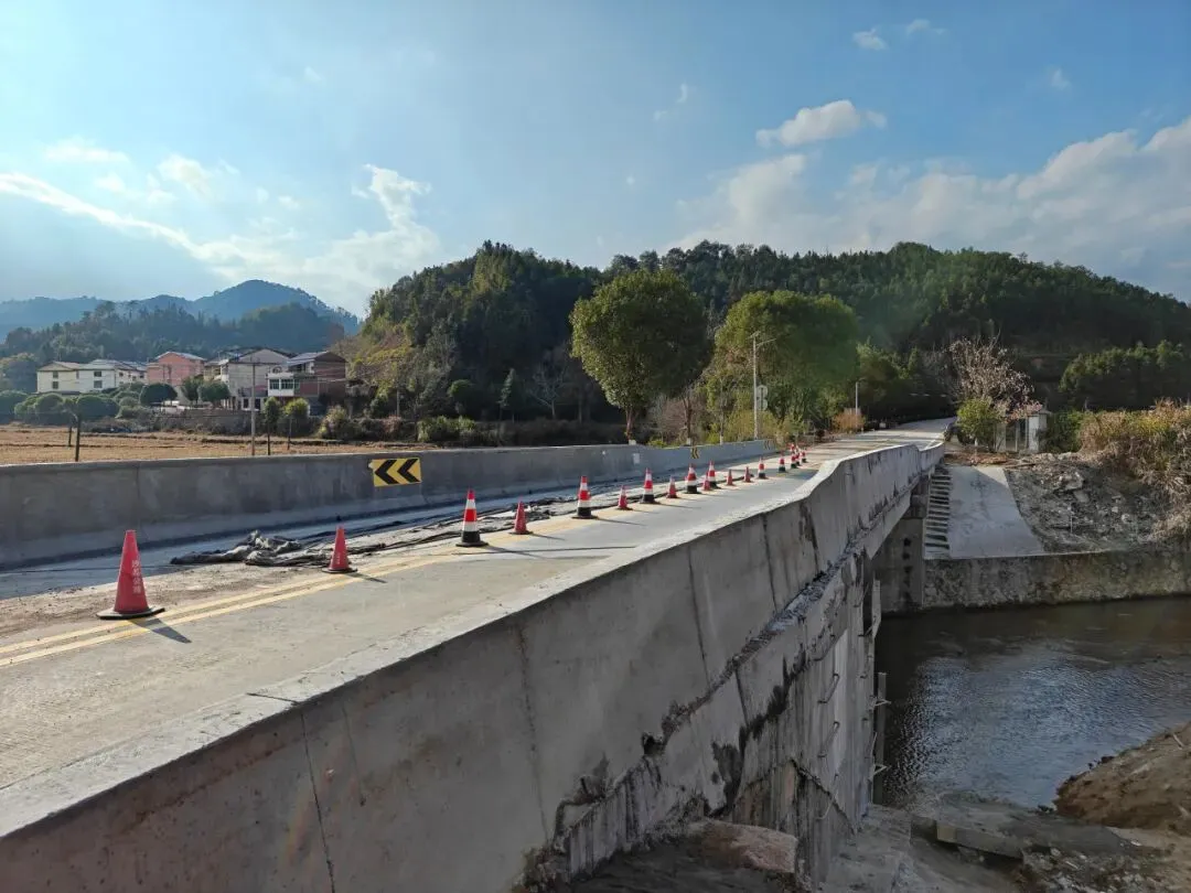 该项目全长38.8米,目前技术状况等级评定为2类,安全防护设施等级为Ⅲ类。经过拆除原有桥面铺装、更换预应力空心板边梁、浇筑桥面铺装、安装SS级钢筋砼防撞护栏和路侧A级防撞护栏,安全防护能力得到显著提升,为春运期间车辆安全通行提供坚实保障。