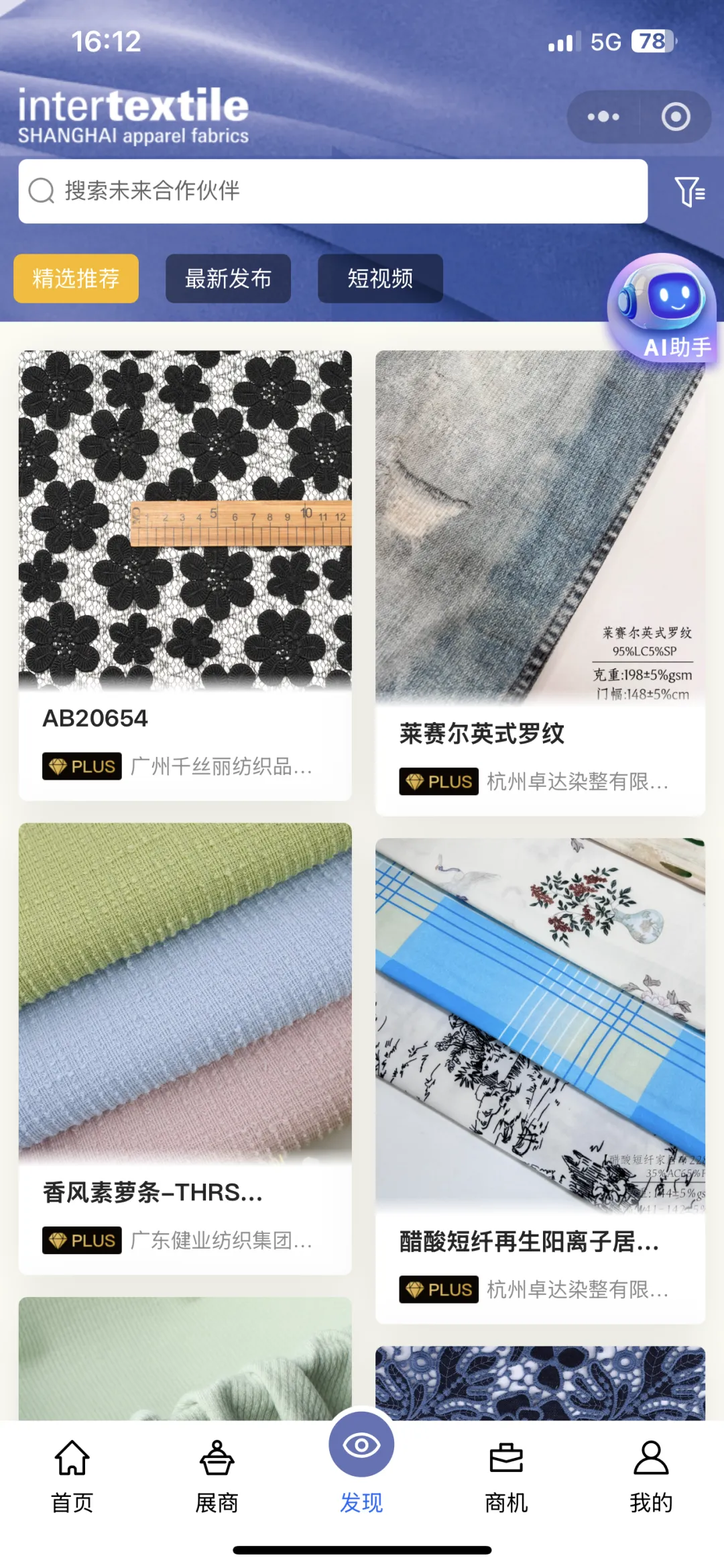 作为中国国际纺织面料及辅料博览会持续多年重点打造的数字化增值服务,Intertextile PLUS数字化平台历经2025年AI人工智能与大数据的革新浪潮后,已实现深度沉淀与全面焕新。随着2026年Intertextile中国国际纺织面料及辅料(春夏)博览会(以下简称:2026Intertextile春夏面辅料展)将于3月11日至13日在国家会展中心(上海)举办并进入紧张筹备阶段,全新升级的Intertextile PLUS数字化服务,正以更佳口碑与更多权益,吸引着越来越多的参展商积极加入,持续丰富平台内容生态,为展会注入持久数字活力。