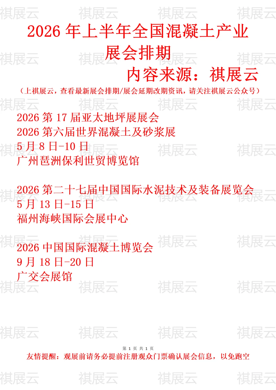 会展资讯丨全国混凝土/水泥展会2026年上半年展会排期表