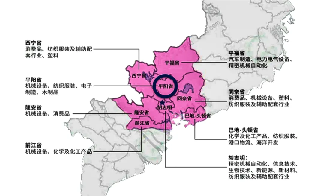 48个工业园区和产业集群,占越南工业出口值10%,占越南工业产值13%。全球65个国家及地区在平阳有投资,外商投资全国第二。中国企业超1600个项目落地平阳省。
